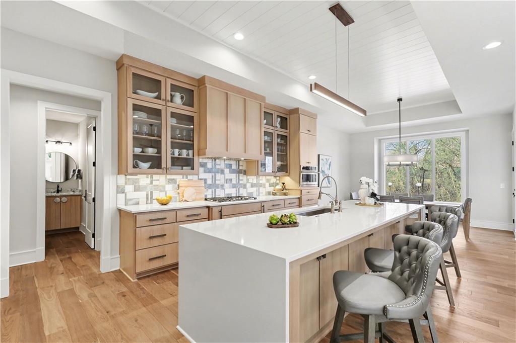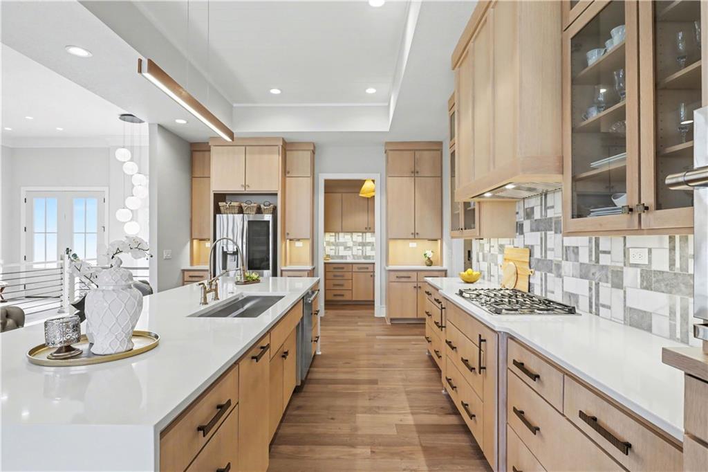 Step into this breathtaking custom-built 1.5 reverse floor plan where style, space, and sophistication come together seamlessly. Just shy of 4,500 square feet, this exceptional home offers 4 bedrooms, 3.2 baths, a 3-car garage, and a coveted walk-out lower level. Stunning curb appeal welcomes you with beautifully manicured landscaping and a charming front porch, while the peaceful backdrop of mature woods and a protected stream creates a private, nature-filled retreat. Inside, an open-concept layout is flooded with natural light and showcases soaring ceilings, gorgeous light hardwood floors, and elegant finishes throughout. The show-stopping kitchen is a dream for entertaining, featuring an oversized island, abundant cabinetry, and a butler’s pantry complete with beverage center and extra prep space. Slide open the glass doors and step onto the fully screened-in porch, the perfect spot to unwind while overlooking the serene, tree-lined setting. The main-floor primary suite is a true sanctuary, highlighted by a stunning statement wall and a spa-inspired bath with backlit mirrors, a luxurious soaking tub, and a jaw-dropping walk-in closet featuring custom built-ins, a center island, and a dedicated makeup vanity. A second main-level bedroom and full bath add flexibility and convenience. Downstairs, the finished walk-out lower level expands your living and entertaining space with two additional bedrooms, a spacious family room with a full wet bar, and an impressive workshop with sealed floors, motion-sensor lighting, and direct access to the backyard and a second covered screened porch. No detail was overlooked — from the epoxy-coated garage floor and upgraded interior lighting to enhanced landscaping and countless thoughtful touches. With approximately $83,000 in upgrades, this home shows like new, has been lightly lived in, and meticulously maintained. Why wait to build when you can have luxury, upgrades, and perfection ready now!