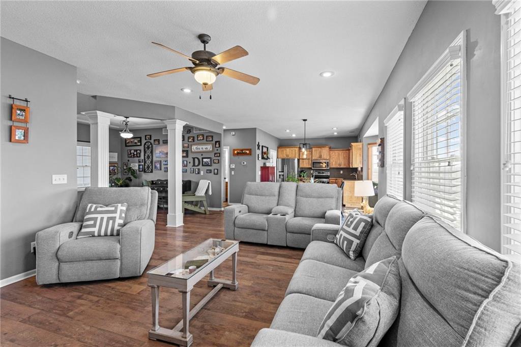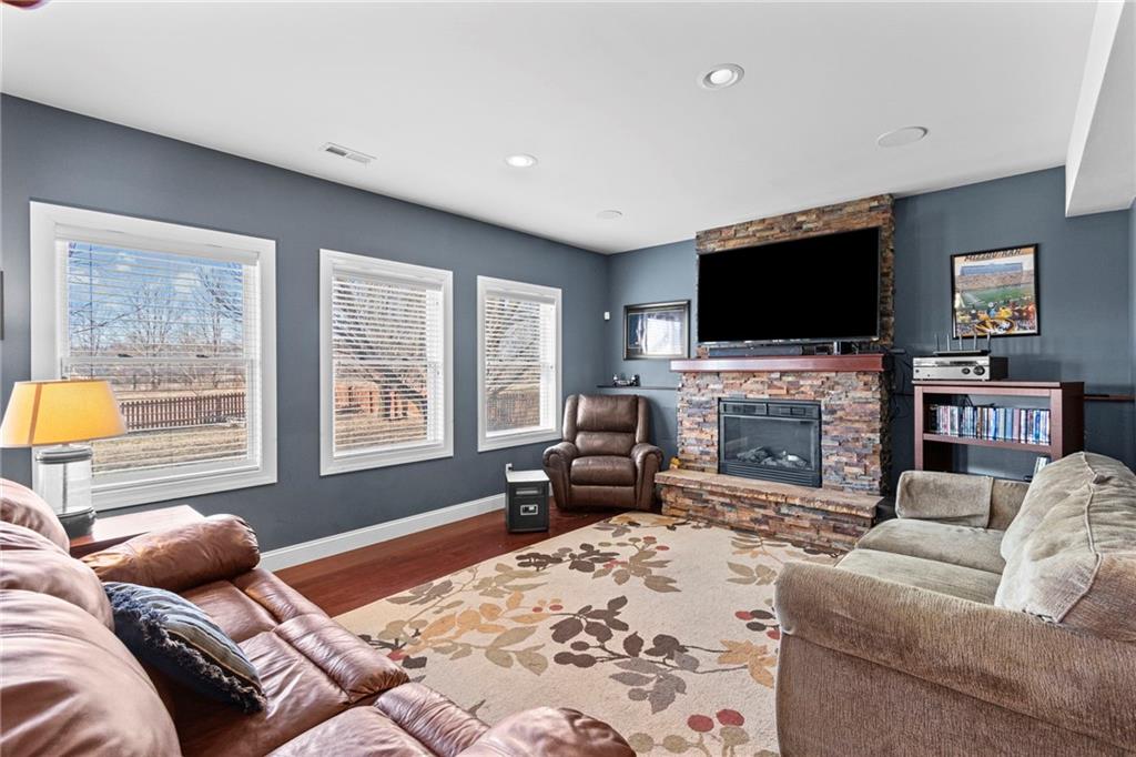 OPEN HOUE FOR 1/24 HAS BEEN CANCELED. Welcome home to 1301 NE 196th Street in Smithville, where space, comfort, and location come together effortlessly. A covered front porch sets a welcoming tone before you step inside to an open floor plan that seamlessly connects the kitchen, dining area, and living room—ideal for both everyday living and entertaining. A half bath on the main level adds everyday convenience. Upstairs, the spacious primary suite offers a true retreat with two walk-in closets and a jetted tub, while three additional bedrooms and a full hall bath provide plenty of room for everyone to unwind. The finished lower level adds even more flexibility with a generous rec room, complete with a wet bar and a convenient half bath—perfect for hosting, hobbies, or movie nights. Step outside to an expansive fenced backyard, accessible from both the main level and basement, with no homes directly behind you for added privacy. Located directly across the street from the neighborhood pool and close to community trails and a pond, this home is also just minutes from Smithville Lake and nearby boat docks. With four bedrooms, two full bathrooms, and two half baths, plus a layout designed for real living, this home makes it easy to imagine yourself settling in and staying awhile.