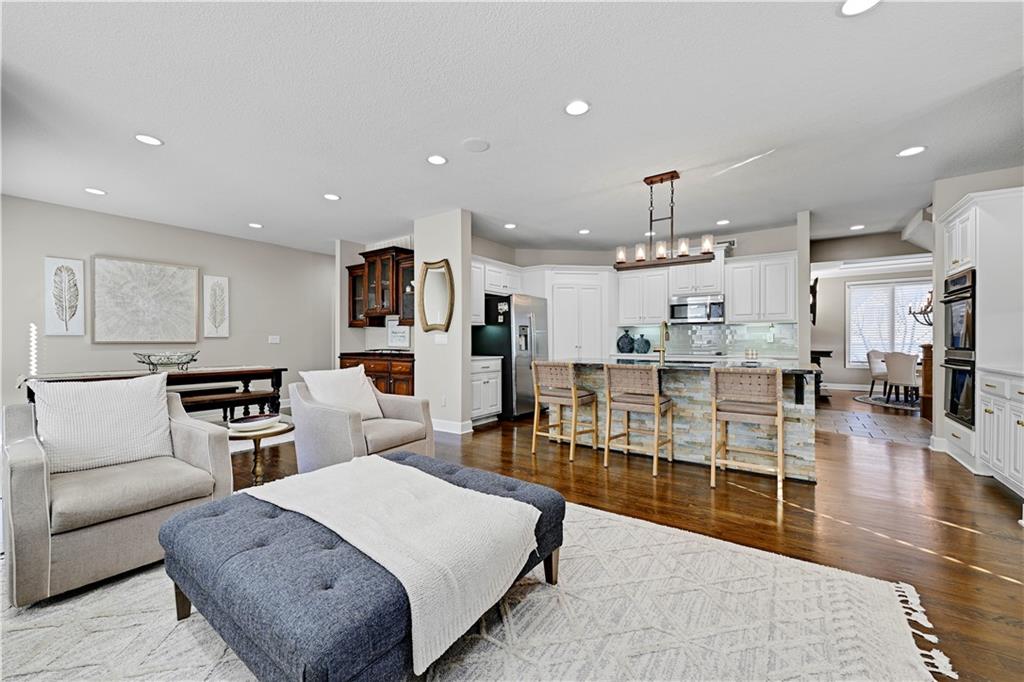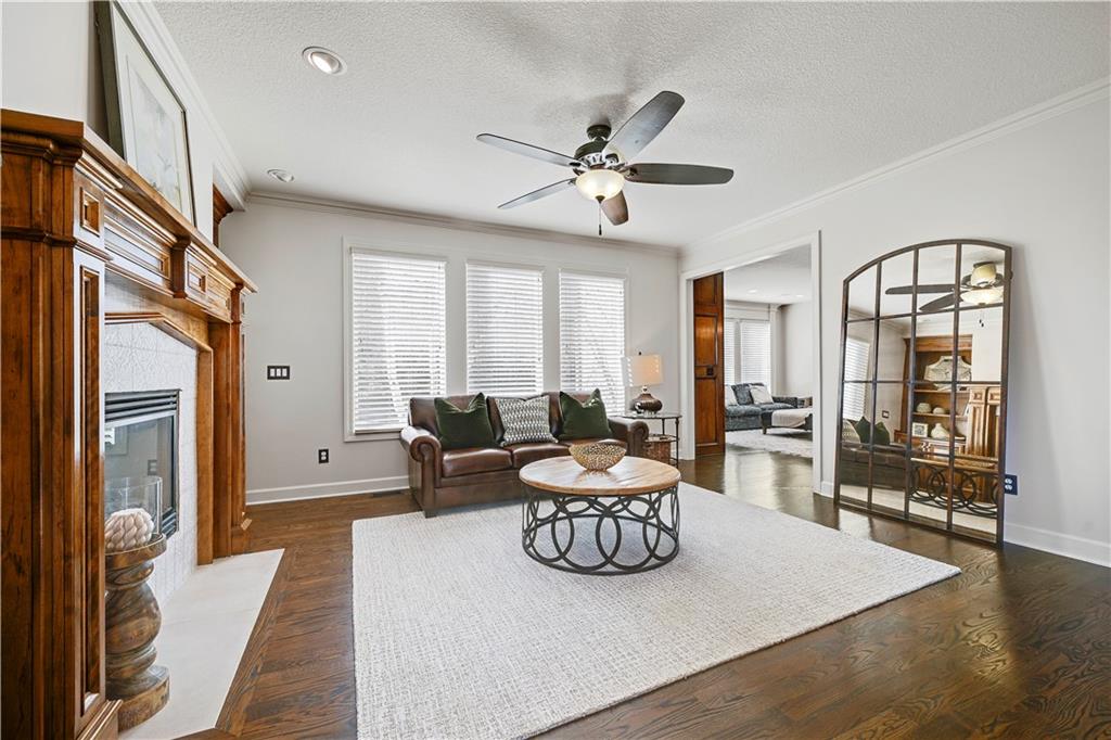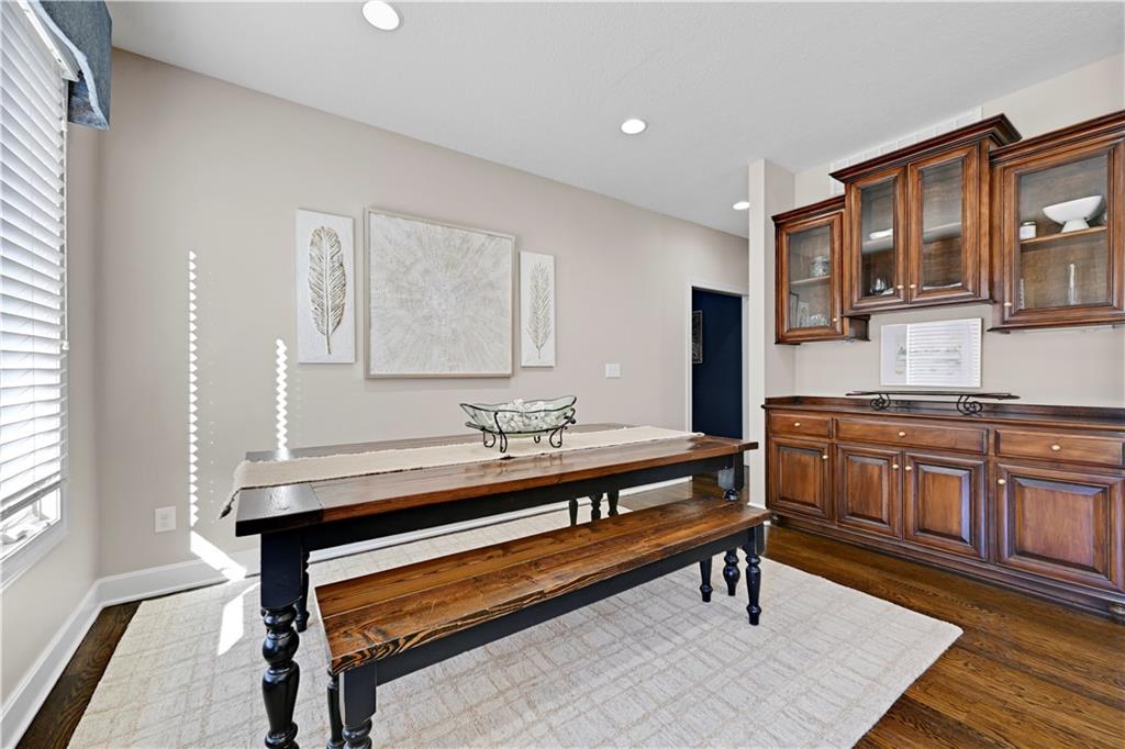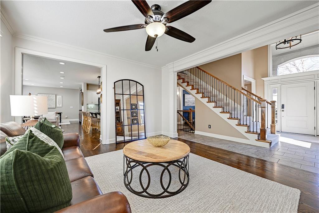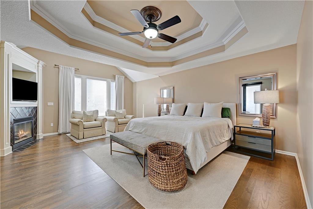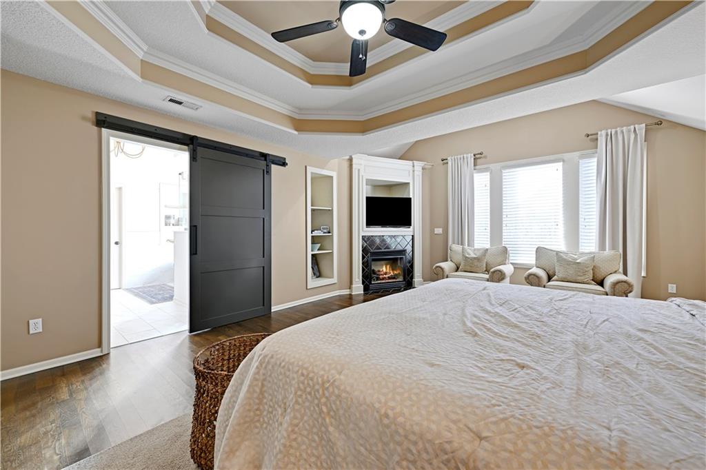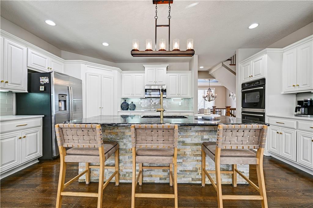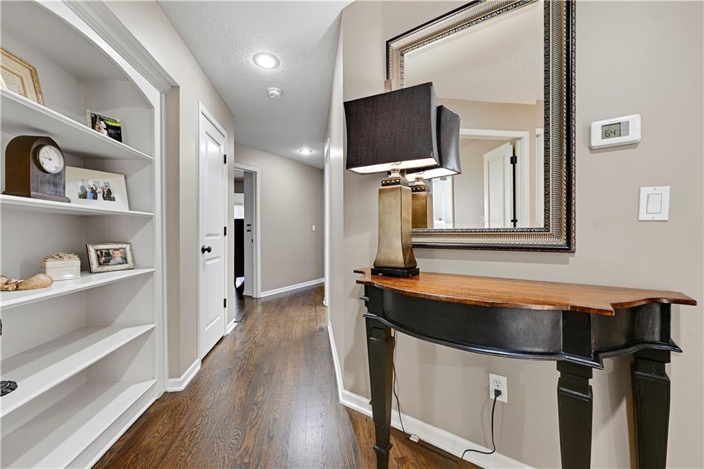 Don’t miss this one-owner, custom-built home in the highly desired Deer Valley neighborhood, offered for the first time on the market. Featuring 3 fireplaces, hardwood floors throughout the main level and second floor (except one bedroom with upgraded carpet). The main level offers a great room, formal dining room, hearth room, and breakfast area adjacent to the kitchen—ideal for both daily living and entertaining. Enjoy peace of mind with BRAND NEW ZONED HVAC! The spacious primary suite includes an updated bath with walk-in shower, freestanding tub, barn-door entry, plus a custom closet with built-in dressers and makeup desk. A convenient main-level office nook features built-in desk and cabinetry perfect for the work from home professional. The finished lower level boasts a walk-behind wet bar, family room, 5th bedroom, and full bath. Outdoor highlights include a basketball sport court, entertaining patio, and fenced yard. Additional features include central vacuum. Located in the highly sought-after Blue Valley School District including Timber Creek Elementary, Aubry Bend Middle & Blue Valley Southwest High Schools. Deer Valley offers a community swimming pool. play area, walking trail and an aesthetically landscaped lake (2 acres +/-) with aerator fountain. Easy access to shopping and dining in nearby BluHawk! Don't miss out on this exceptional home.