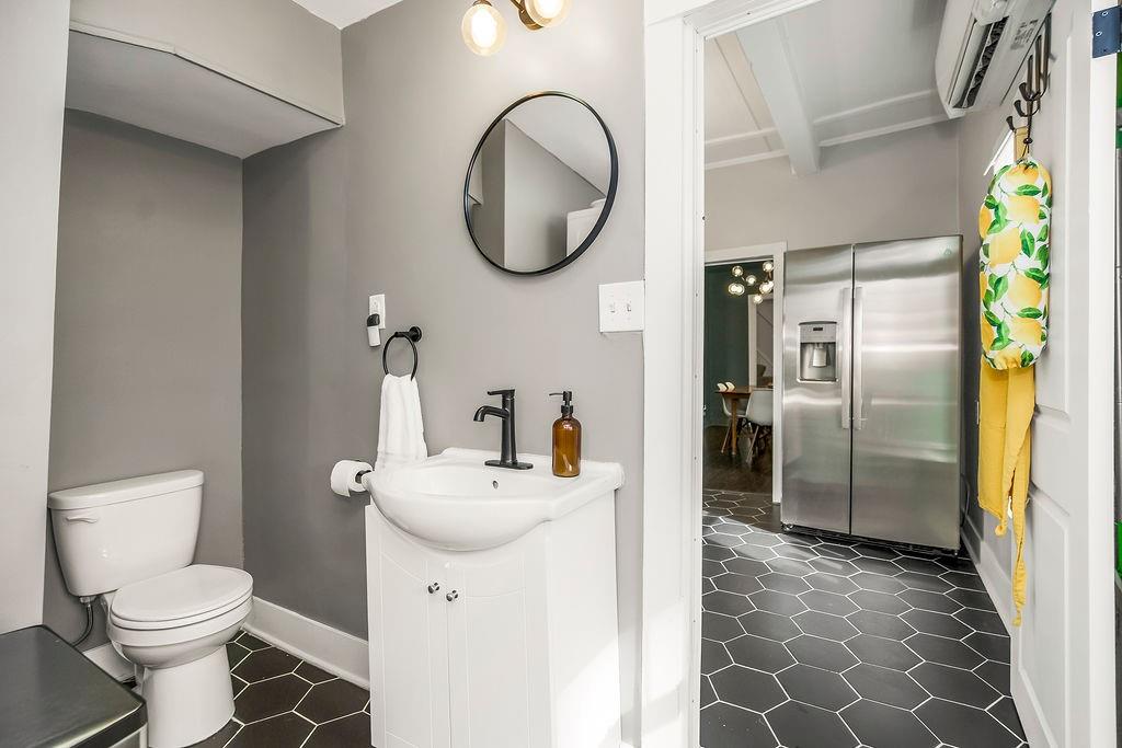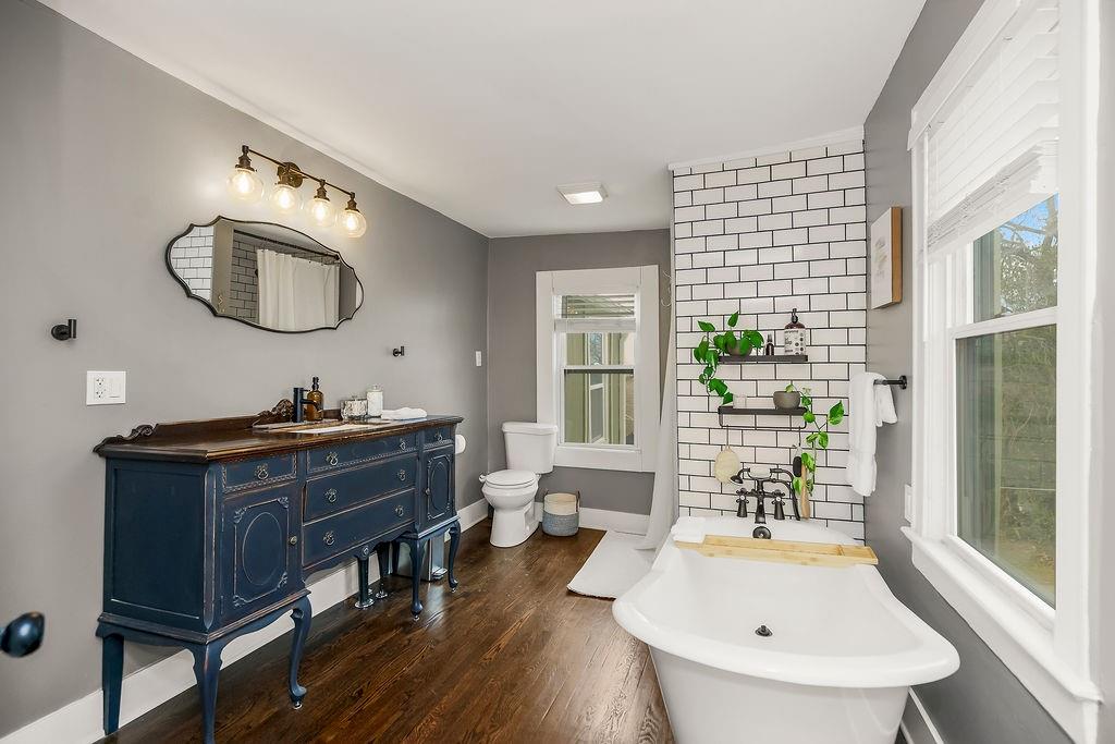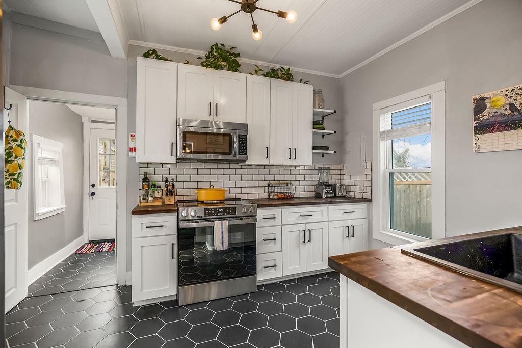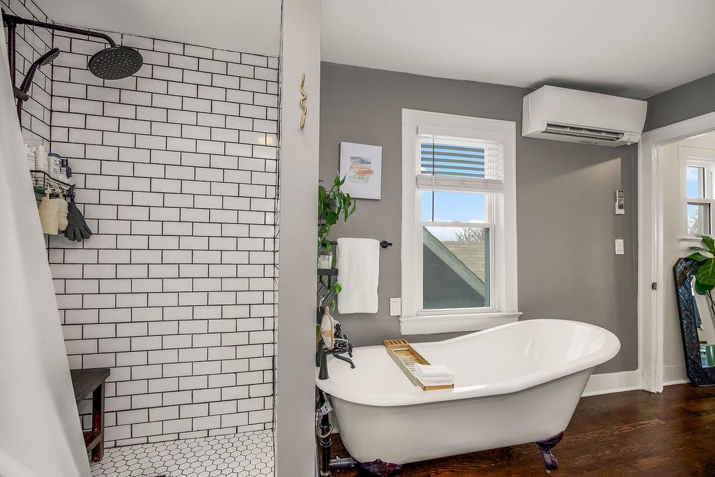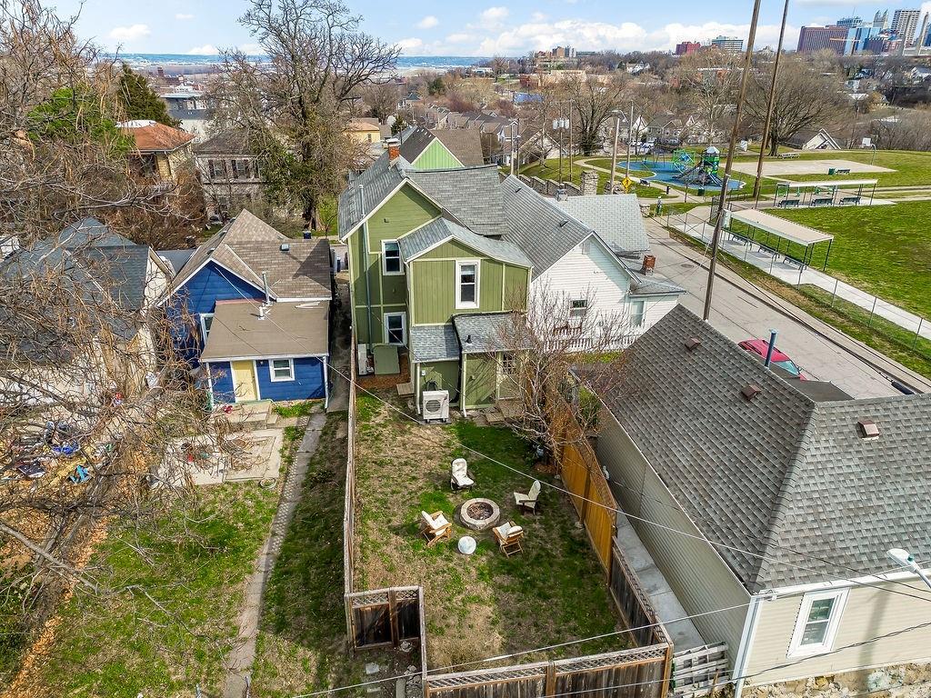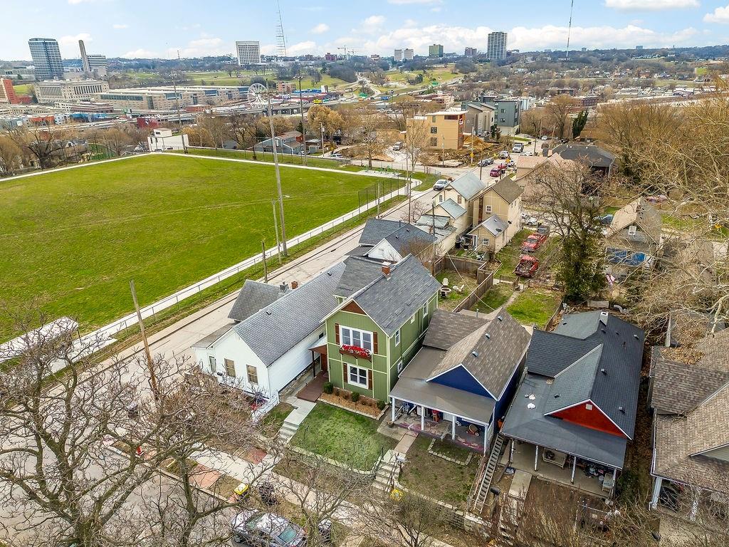 Crossroads / Westside Beauty! This stunning home blends modern updates with the charm of the late 1800s, all while offering breathtaking views of Observation Park and Downtown, just steps from your front door. Enjoy immediate access to the park offering a workout area, basketball court, playground, and only a quick walk to the heart of the city, Crown Center and more. The crisp curb appeal makes a lasting first impression with freshly painted exterior (2025/2026), beautifully stained wood accents and shutters, a covered front entry, and manicured landscaping. Step inside to a charming entry that sets the tone with playful tile. Just off the entry, the spacious dining room showcases rich wood floors and flows seamlessly into both the kitchen and living room—perfect for entertaining. The light-filled living room offers generous space and flexibility, with access to a main-level bedroom or ideal flex space for an office, den, or guest room. The remodeled kitchen features tile flooring, warm wood countertops, white cabinetry with ample storage, and stainless-steel appliances including a refrigerator and built-in microwave. Also on the main level are a convenient half bath, laundry area (washer and dryer stay), and access to the fenced backyard. The backyard is quaint and private, offering a firepit, side storage shed, and a storm shelter with newly finished cinder block walls. Upstairs, the spacious second floor includes two additional bedrooms, both with city views. The primary suite features rich wood floors and a large side room. The oversized full bath is a true showstopper, complete with a walk-in shower, stunning clawfoot tub, and a statement vanity. Additional highlights include newer windows, multiple mini-split heating/cooling units for year-round comfort, added insulation in the attic and utility areas, and fresh exterior updates. An unbeatable location, thoughtful remodels, historic charm, and an effortless flow—this home truly offers the complete package.