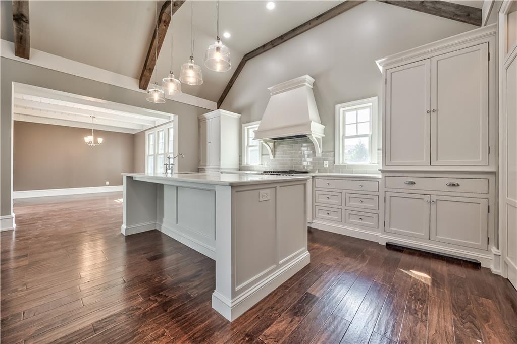 Canyon Creek by the lake is home to this stunning 5-bedroom, 3.5 bath home. The beautiful open floor plan features a graat room with soaring vaulted ceilings and a spacious kitchen flowing into the elegant light filled dining room. The deck is just off the dining room and surrounded on 3 sides by the home, perfect for quiet relaxing. The main-floor primary suite with a luxurious en-suite bathroom is ultimate comfort & convenience. The large backyard is fully fenced. There is a 3-car garage as well as a full basement ready for finishing. This prime Lenexa location is a rare find with high-end finishes and thoughtful design.