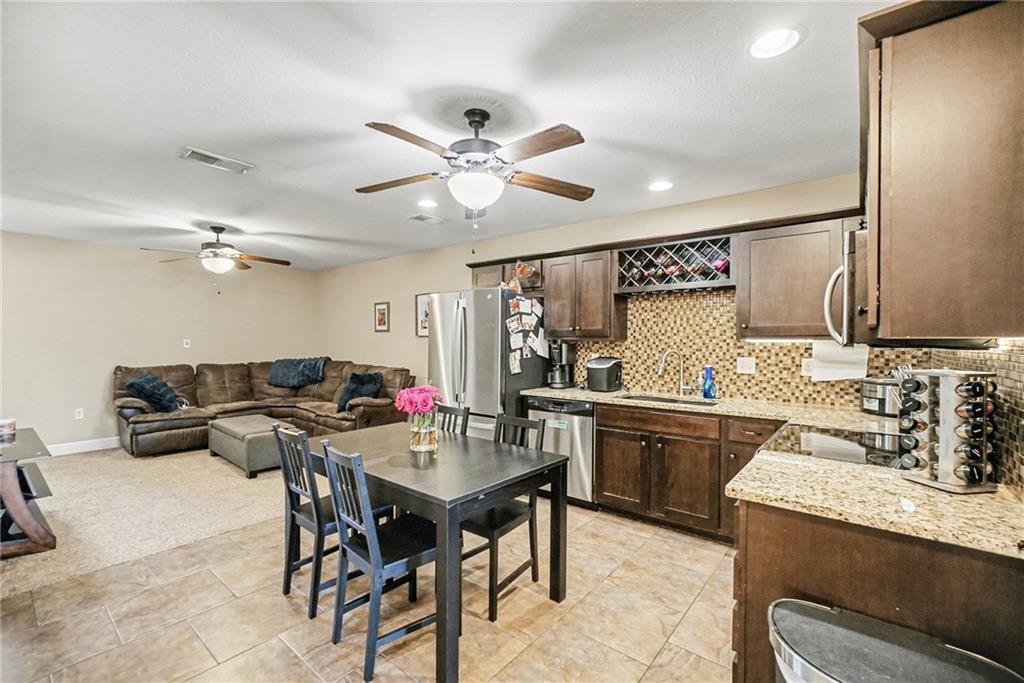 Light, bright, and open, this welcoming Townhome is ready to call home! The open-concept main level features a spacious Living Room with ceiling fan and carpet, flowing seamlessly into the kitchen and dining area. The Kitchen is well-appointed with granite countertops, tile backsplash, stainless steel appliances, a pantry, and a refrigerator included. The Primary Suite is conveniently located just off the kitchen and offers tall ceilings, a walk-in closet, direct bathroom access, and access to the back patio. A main-level washer and dryer are also included for added convenience. Upstairs, you’ll find a generously sized Second Bedroom, a Full Bathroom, and a large Loft featuring a cozy fireplace and walk-in closet—perfect for a home office, media room, or additional living space. Recent updates include a newer HVAC system, refrigerator, washer, and stair carpet. HOA includes exterior maintenance including roof, siding, lawn care and snow removal, and don't miss the Neighborhood Pool!