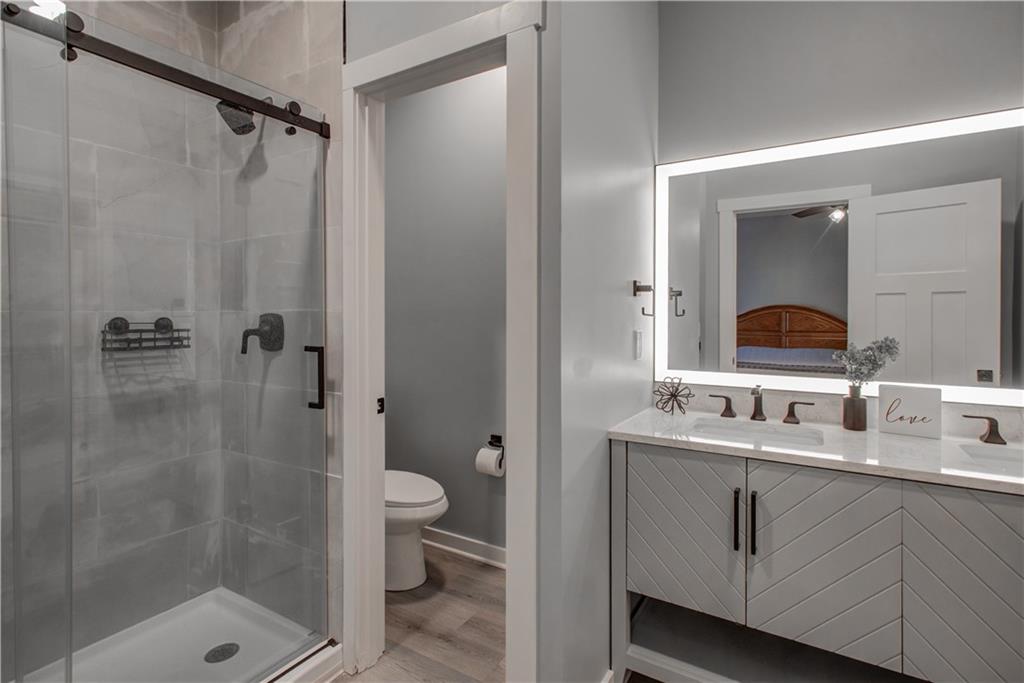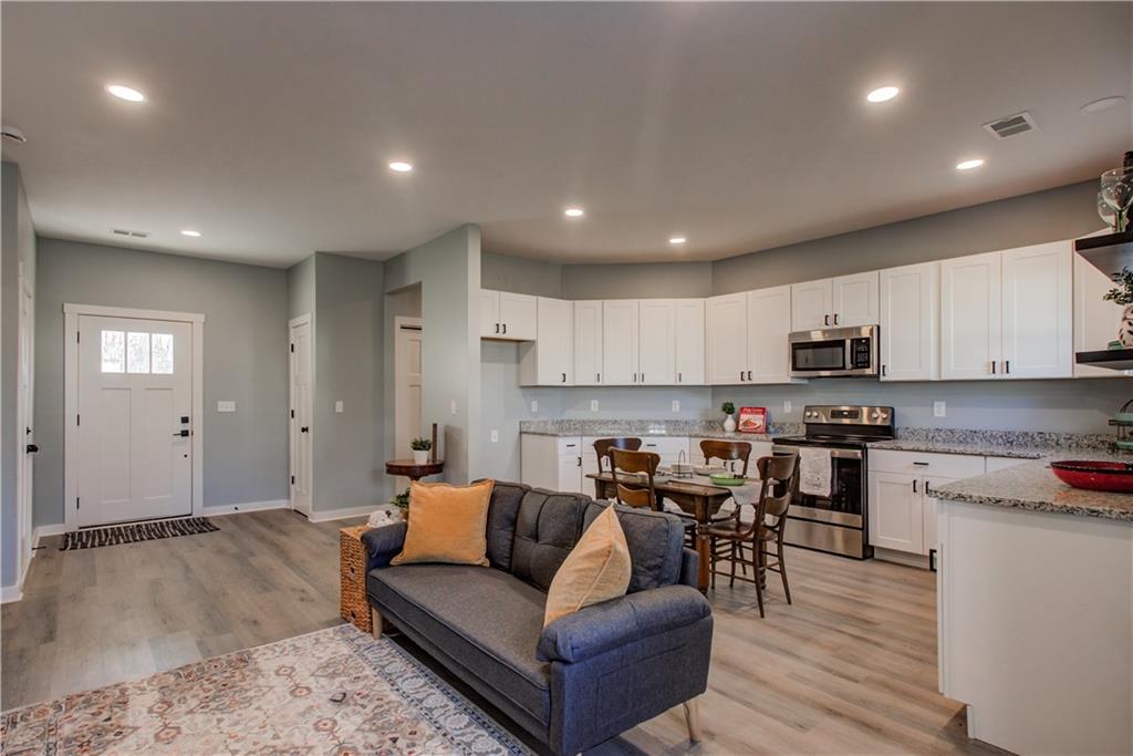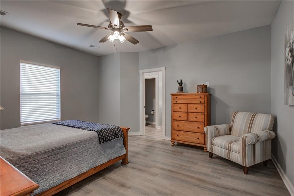Like-new ranch home featuring an open-concept layout and high-quality finishes throughout. This well-appointed home offers three generously sized bedrooms and two full bathrooms, including a private primary suite designed for comfort, convenience, and security. The primary bedroom features a spacious walk-in closet that also serves as a built-in storm shelter, providing added peace of mind. The primary bathroom showcases a beautifully tiled walk-in shower and double vanities. The kitchen is both stylish and functional, complete with sleek granite countertops, ample cabinetry, and generous prep space—ideal for everyday living as well as hosting family and friends. The open flow from the kitchen into the living and dining areas creates a bright, inviting atmosphere. Enjoy the ease of true one-level living, with all bedrooms, bathrooms, and the laundry conveniently located on the main level. This home seamlessly blends modern design, quality construction, and low-maintenance living, making it an excellent fit for a variety of lifestyles.