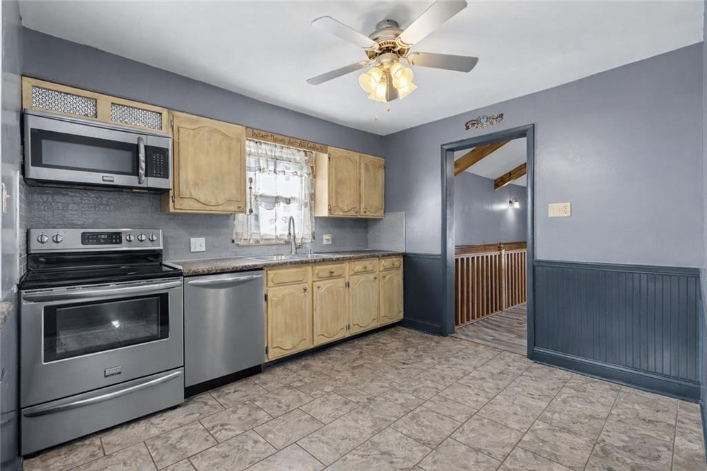 This charming Craftsman style home sits on a quiet street with the loveliest neighbors. One of the standout features of this home is the oversized living space added to the back — with vaulted ceilings and beautiful natural light, this area is incredibly spacious and makes the perfect living/dining combo or true hangout quarters of the house. Both main-level bedrooms feature brand new carpet and are separated by a full bathroom, offering a great layout and privacy. Laundry has been thoughtfully moved to the main level for easy one-level living, but can easily be converted back to a traditional closet with laundry returned to the basement if preferred. LVP flooring has been added throughout the living room and great room, giving the home a fresh, updated feel. Step out front and enjoy the covered porch — just add a couple of chairs and you have the perfect spot to relax, rain or shine. Out back, you’ll love the privacy-fenced yard and oversized covered deck. This home also offers a non-conforming bedroom in the basement with a workshop area, built-in storage cabinets, and a utility sink. The detached garage offers more than just parking — it’s perfect for a workshop, hobbies, or extra storage, and the home also provides plenty of off-street parking.