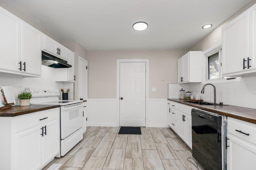 This completely remodeled 3-bedroom, 2-bathroom home offers almost 2,000 square feet of beautifully updated living space. Refinished hardwood floors run throughout the main level, complemented by all-new interior paint, lighting, outlets, and a fully updated electrical system. The kitchen features all-new cabinetry, butcher block countertops, and a newly added door leading to the backyard, creating great flow for everyday living and entertaining. The main bath has been completely gutted and remodeled. The newly finished lower level includes a non-conforming fourth bedroom, offering flexible space for a guest room, office, or workout area, and a newly added full bathroom. The 1-car garage features a new door and opener. This home is nearby schools, golf clubs, and has easy high access.