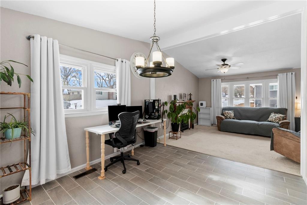 Located in Warrensburg—just 20 minutes from Whiteman Air Force Base and less than 45 minutes to downtown Kansas City—this four-bedroom home with additional office space offers far more room and flexibility than you’d expect. Warrensburg is a vibrant college town known for its parks, schools, and year-round activities, making it an excellent fit for military families, professionals, and anyone seeking a strong community with easy commute access. The main level features 3 bedrooms and 1 full bath, along with a formal living room and dining room showcasing a mix of original hardwood flooring and updated finishes. The home has been freshly painted and includes updated tile flooring in the kitchen and dining area. The kitchen connects easily to everyday living spaces, while both a sunroom and screened-in porch provide versatile areas for relaxing, hobbies, or entertaining. The finished lower level expands the living space with a 4th bedroom, full bath, family room, office space, laundry room, and storage, making this home ideal for multi-generational living, remote work, or flexible use. Outside, the fully fenced backyard feels larger than expected for a .27-acre lot thanks to its efficient layout. Rear street access allows vehicles to drive into the backyard, offering added convenience for equipment, trailers, or outdoor gear. A storage shed conveys with the home, providing additional functionality. A carport offers covered access to the home and protection for vehicles, adding everyday convenience. Major updates include new vinyl windows throughout, a metal roof less than 10 years old, and a new HVAC system installed within the last few months, offering efficiency and peace of mind. With true four-bedroom living, bonus office space, a strong Warrensburg location, and proximity to Whiteman AFB and Kansas City, this home delivers exceptional value and long-term potential.
