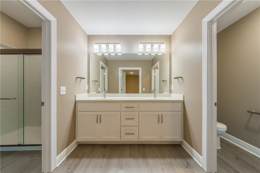 Welcome to this magnificent residence located in the prestigious Greystone Estates neighborhood. Exquisite in both design and craftsmanship, this stunning home offers 5 bedrooms, 3.5 bathrooms and over 4,800 sq ft of luxurious living space. Upon entry you are immediately dazzled by the stunning view and abundant natural light of the floor to ceiling windows of the living room. The kitchen is a true chef's dream, outfitted with top-of-the-line appliances (including a Wolf double oven and commercial refrigerator), custom cabinetry, a massive island and quartz counter tops. The master suit is a sanctuary of relaxation featuring a beautiful master bath and large walk in closet. Additional interior upgrades such as the coffered ceilings found in the office, plantation shutters and the beautiful electric fireplace enhance the esthetic of the home. All three main floor bedrooms boast a walk in closet. The finished lower level features a large open rec room, second kitchen and full bath which make it ideal for entertaining. Outside in your private oasis you will find a large enclosed deck and lower patio sitting on a large 1.7 acre lot over looking the gorgeous country side.