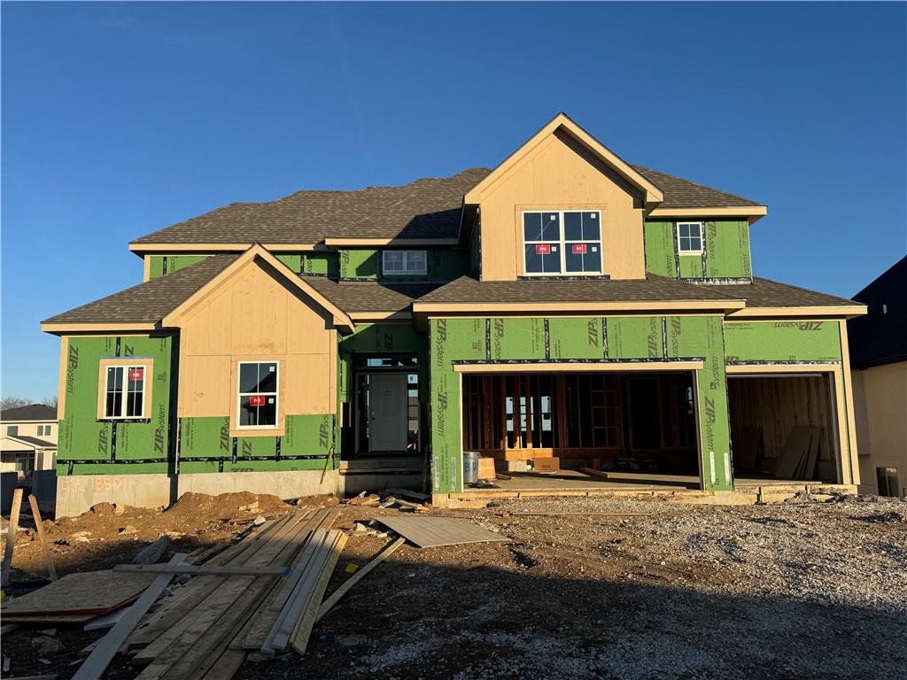 The Brooklyn by New Mark Homes KC sits on lot 112 in Southern Meadows. The main floor has front office or 5th bedroom, incredible two story great room with lots of windows for natural lighting. The kitchen is adorned with custom cabinetry and all the elegant finishes you would expect. Covered patio with east back yard makes grilling a breeze in the summer! Primary suite is secluded and the bathroom has soaker tub, separate shower and lovely finishes. The upstairs boasts 3 secondary bedrooms all with walk-in closets, loft area and a utility on the bedroom level. Lower level is unfinished for your future finish. The home is currently framed and 120-150 days out. Photos of the finished home are the same floor plan but not actual house as this one is under construction. Colors and finishes will vary.