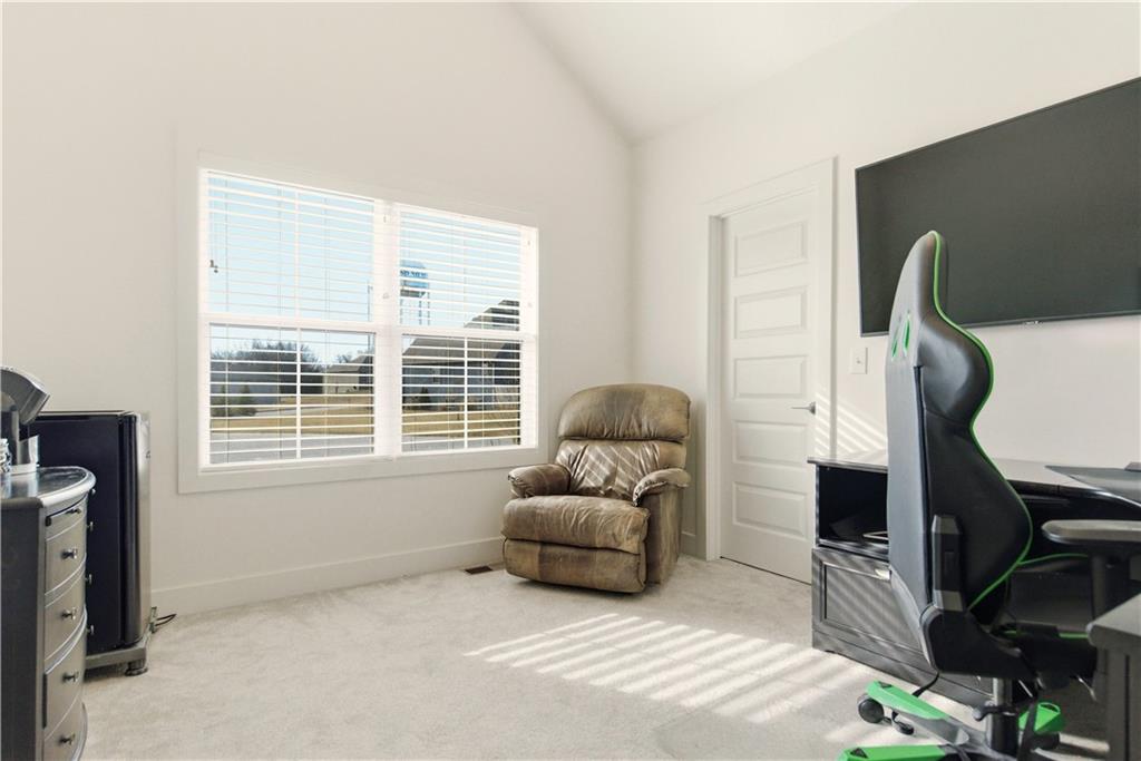 Better than New! Gorgeous Ranch home with Finished Walkout on Large Fenced Yard. Prepare to be impressed with this nearly new home with soaring 13' Ceilings, an Open Floorplan, Abundance of Windows, Amazing Wide Plank White Oak Floors on Main Level, Eye Catching Wood Beams in Great Rm Ceiling, Beautiful Wood Accents such as Windows Seats, & Plantation Shutters. Curb Appeal & the Exterior is Awesome with Timber Entrance, Huge Covered Deck, Large Patio and fully Fenced Yard. You will love the Kitchen with a Huge Quartz Island, Custom Cabinetry, Pantry,6 Burner Gas Cooktop; which opens to a lovely Breakfast area. This true Ranch is home to the Primary Bedroom and 2 additional Bedrooms on the Main Level. The Primary Bathroom will not disappoint with Quartz Counters, Large Soaking Tub, Spacious Tile Shower, and Real Stone Floors. Your Entertaining space greatly expands with a Finished Walkout offering a Large Family Room and 2nd Kitchen with Quartz Counters and areas appointed for a mini Refrigerator and Dishwasher. Note very nearby storage allows space for a Full Sized Refrigerator. 2 Spacious Bedrooms and Bathroom with adjoining exterior Patio complete the Lower Level that is perfect for a Separate Quarters. Here is your chance to skip the building process and enjoy all the perks of a nearly new home that already has the landscaping, window treatments, and all those needed home owner adds once you first move in while enjoying all the amenities of Lee's Summit and nearby Legacy Park!