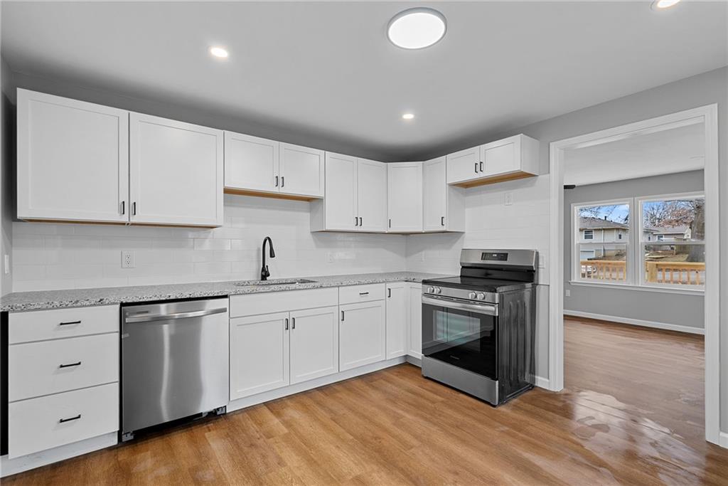 This charming, fully remodeled 2-bedroom, 1-bath home — a move-in ready gem that feels brand new inside and out! Perfect for investors or homeowners seeking a hassle-free purchase, this home has undergone a complete transformation, ensuring modern comfort and peace of mind. Highlights include: - Brand new roof and underlay on both the house and oversized 1-car garage - Fresh siding and gutters on the home and garage - All new windows throughout for energy efficiency and aesthetic appeal - Completely updated interior with new drywall, ceilings, and ceiling insulation in the living room, kitchen, and bath - Modern electrical system featuring a new panel and meter housing - State-of-the-art PEX plumbing throughout the home - Stylish kitchen with stunning granite countertops and sleek stainless steel appliances - Efficient climate control with a 19 SEER 3-zone mini-split system - Beautifully constructed decks, retaining walls, and stairs leading to the basement - A large, unfinished basement offering plenty of potential for additional living space or storage - A freshly seeded and strawed yard, ready for your personal touch This property also offers a spacious oversized garage, providing ample storage and convenience. Don’t miss out on this fantastic opportunity to own a beautifully updated home at a great price. Whether you're looking to invest or settle in, this house combines modern upgrades with classic charm. Schedule your showing today!