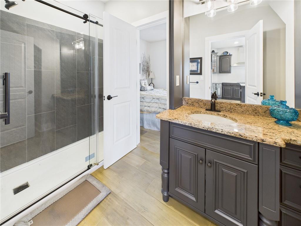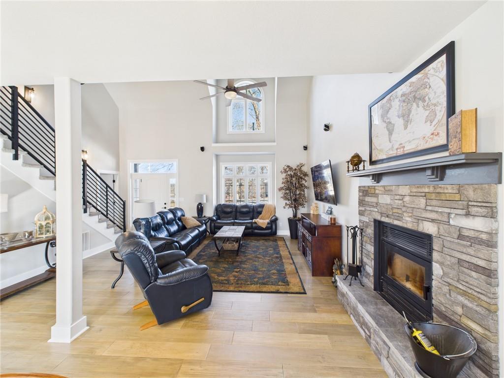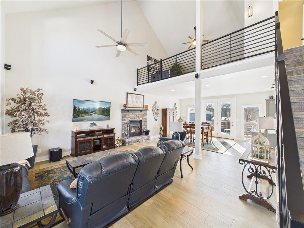 Built in 2022 and situated on approximately 0.34 acres, this beautiful 3-bedroom, 2-bath home is located in the desirable Paradise Point subdivision. (3rd bedroom does not have a window) The seller truly spared no expense with upgrades throughout the home. The entry welcomes you into an open floor plan with soaring cathedral ceilings and large windows that flood the home with natural light. The living room is cozy and spacious with a wood-burning fireplace sitting perfectly between the living and dining rooms, creating a warm and inviting atmosphere. The dining room features tall, elegant windows and a French door that opens to a large deck and flows seamlessly into the spacious kitchen, making it ideal for entertaining. The kitchen offers an abundance of tall cabinetry, large island with additional seating and elegant granite countertops. Just off the kitchen is a large pantry/laundry room with granite countertops and additional storage. The spacious main-level primary bedroom features a full bath with granite countertops and a tiled walk-in shower. Upstairs, you’ll find a loft overlooking the main living area, two spacious bedrooms, and a large bathroom featuring granite countertops and a dedicated makeup vanity. One upstairs bedroom includes pull-down attic access for extra storage. The attached garage is approximately 461 square feet with tall ceilings, two garage doors, and a built-in tornado shelter located in the floor of the garage. Between the home and the detached garage is a circle drive for additional parking. The detached shop with concrete flooring offers an additional 192 square feet of workspace or storage. This home is part of the Paradise Point subdivision in Warsaw, MO, on the Upper Osage Arm of the Lake of the Ozarks. The community offers lake access, private docks, and close proximity to marinas and swim beaches—perfect for boating, fishing, and lake living.