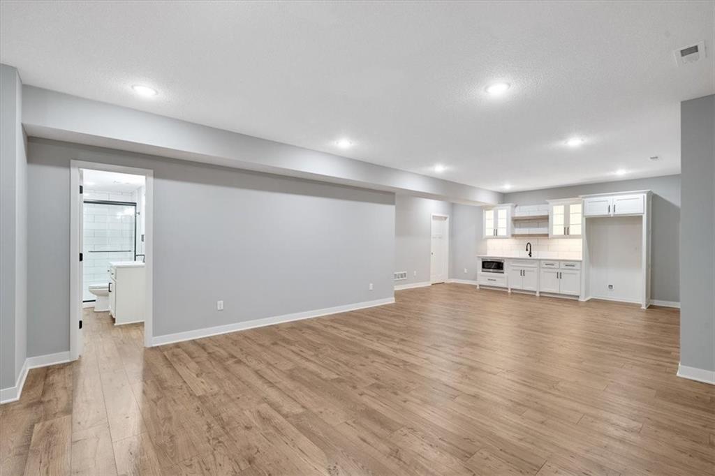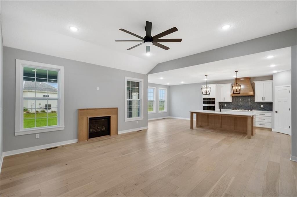 Lot 41 - True Ranch home built by Jim Perry Homes with a finished lower level. Sits on a cul-de-sac daylight lot. FINISHED PHOTOS OF A PREVIOUS and SMALLER MODEL. This one is an EXPANDED version of those photos. Estimated Completion is April 2026. Three Bedrooms & 2 Baths on the main level! Spacious Living Room with fireplace, open to the amazing Dining Area & Kitchen. The Kitchen has a large quartz topped island, gas cooktop and abundant counter space/cabinets. Primary suite includes large bedroom, walk in shower, and walk in closet. Nice covered deck! Lower Level has a fabulous Rec Room including a nice wet bar area and Two more Bedrooms with walk in closets and a third full Bath. 3 Car Garage. Sprinkler System. Enjoy golf course living in a great location, close to everything! Convenient highway access. Ten minutes to the Legends and 30 minutes to the airport and most other parts of the metro area and to Lawrence. Community pool, play and picnic area, tennis, basketball and pickleball courts. Area restaurant open to the public. Acclaimed Basehor-Linwood Schools! HOA also covers lawn maintenance (mowing/trimming/blowing, weed and feed, sprinkler turn off/ turn on, landscape maintenance) and snow removal over 2 inches.