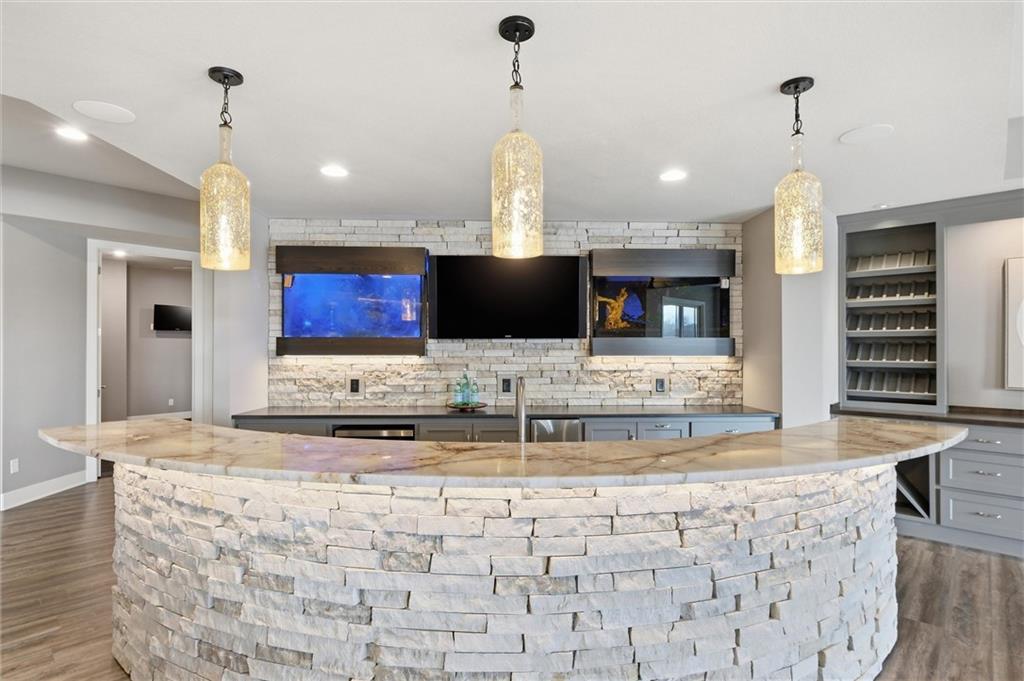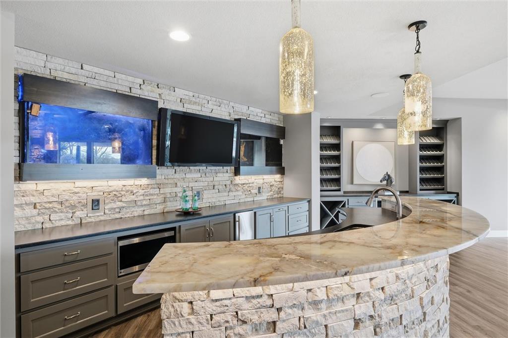 Paradise Found! Where Every Day Feels Like a Private Retreat. Welcome to 16121 Paradise Street, a waterfront sanctuary nestled in the heart of Overland Park’s prestigious Mills Farm community. From the moment you step inside, you’re greeted by sweeping views of the tranquil pond and a layout designed for both grand entertaining and intimate moments. Thoughtfully updated and move-in ready, this 1.5-story masterpiece offers over 7,000 square feet of curated luxury: • A chef’s kitchen with double islands and hidden pantry • Hearth room with fireplace and water views • Main-level primary suite with spa bath • Lower-level theater, game room, and full bar—your personal entertainment wing • Custom aquariums that double as living art •Outdoor living spaces that rival resort settings, complete with fire features and lush landscaping Whether you're hosting sunset soirées or enjoying quiet mornings with coffee by the water, this home delivers a lifestyle that’s as elevated as its design.
