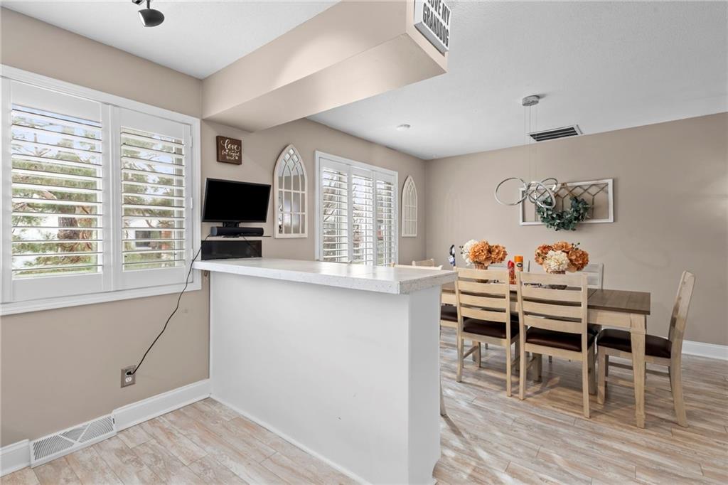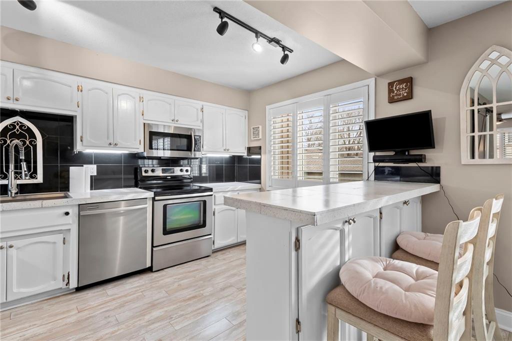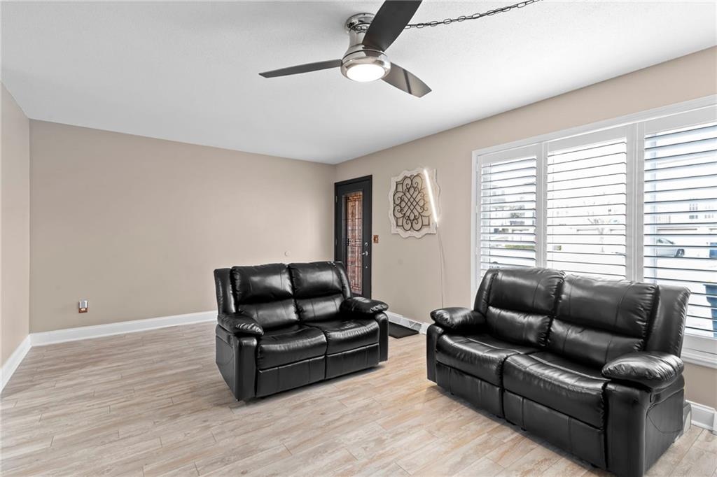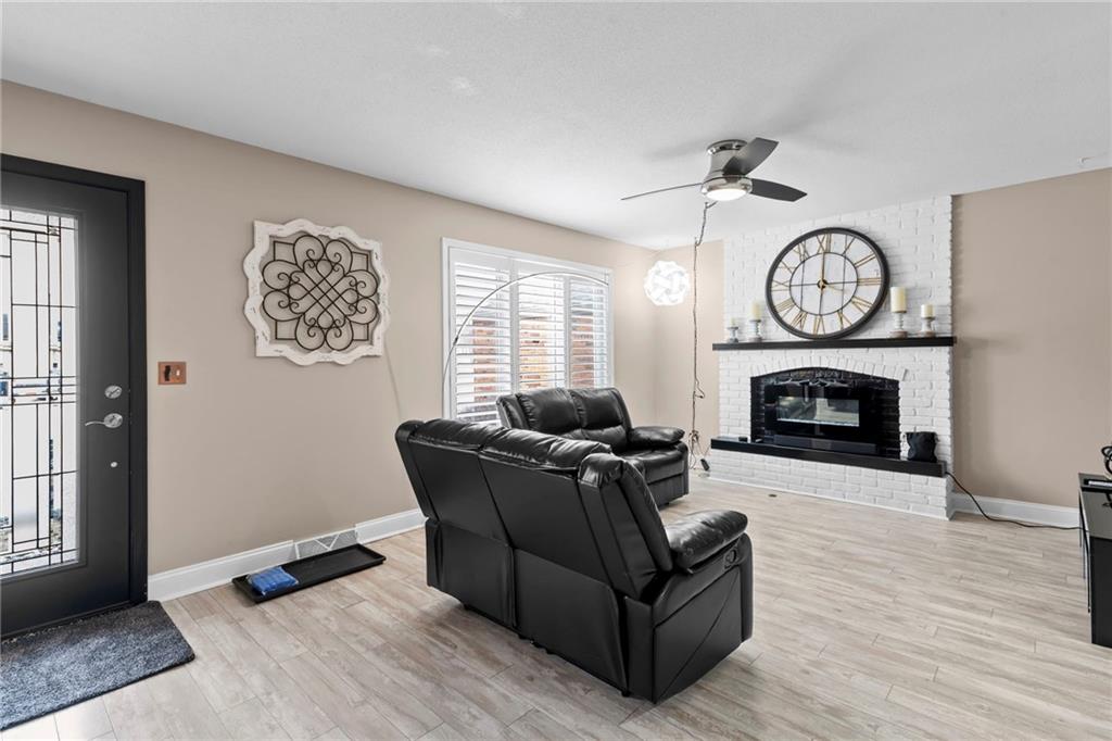 Tucked into the established The Coves neighborhood, this thoughtfully updated townhome blends comfort with everyday practicality. The main level welcomes you with light flooring, neutral tones, and a spacious living room anchored by a painted brick fireplace, perfect for both quiet evenings and easy entertaining.The dining area flows naturally into the bright kitchen, featuring white cabinetry and a functional layout that keeps everything within reach without sacrificing style. Upstairs, two bedrooms and a full bath are intentionally set apart from the main living spaces, offering privacy and a true retreat at the end of the day. The finished basement expands your options with a rec room or second living area, plus a convenient half bath, ideal for movie nights, guests, or a home office setup. Enjoy maintenance-provided living, with HOA services covering exterior maintenance, lawn care, snow removal, trash, and sewer—plus access to neighborhood amenities including a pool and clubhouse. Located just off Barry Road with quick access to shopping, dining, and entertainment, and minutes from I-29 for easy commuting throughout the metro, this home delivers both location and low-maintenance living.