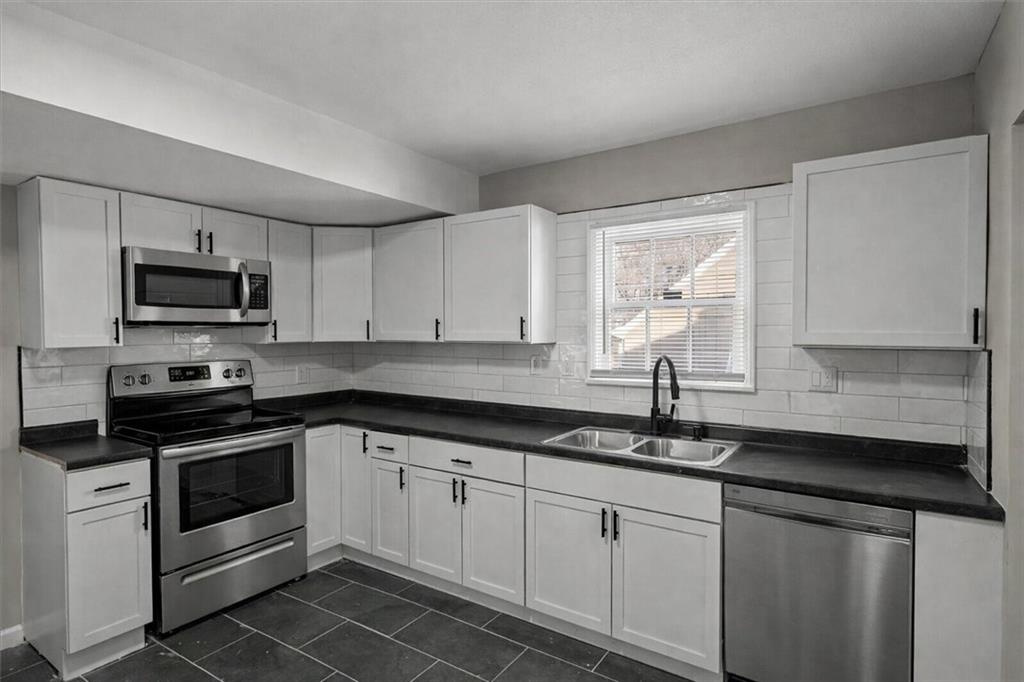 Well-improved 1.5-story home offering 4 bedrooms with all-new carpet and modern ceiling fans throughout. The kitchen features brand-new cabinetry, with a stove, dishwasher, and microwave to be installed prior to closing. The main level includes convenient laundry and a half bath, while bathrooms showcase custom tile work and new vanities. The basement offers partially finished ceilings, providing flexible space for storage, recreation, or future finishing. Significant exterior improvements include vinyl siding, new vinyl windows, and a new roof and gutters. A detached two-car garage and ample parking complete this move-in-ready home.