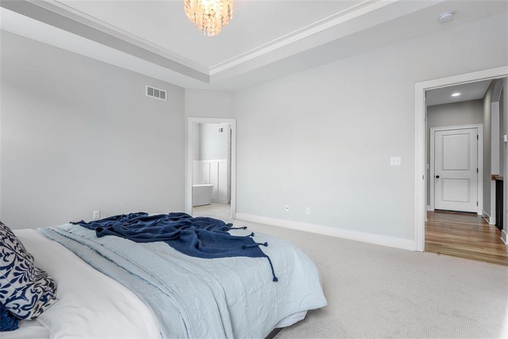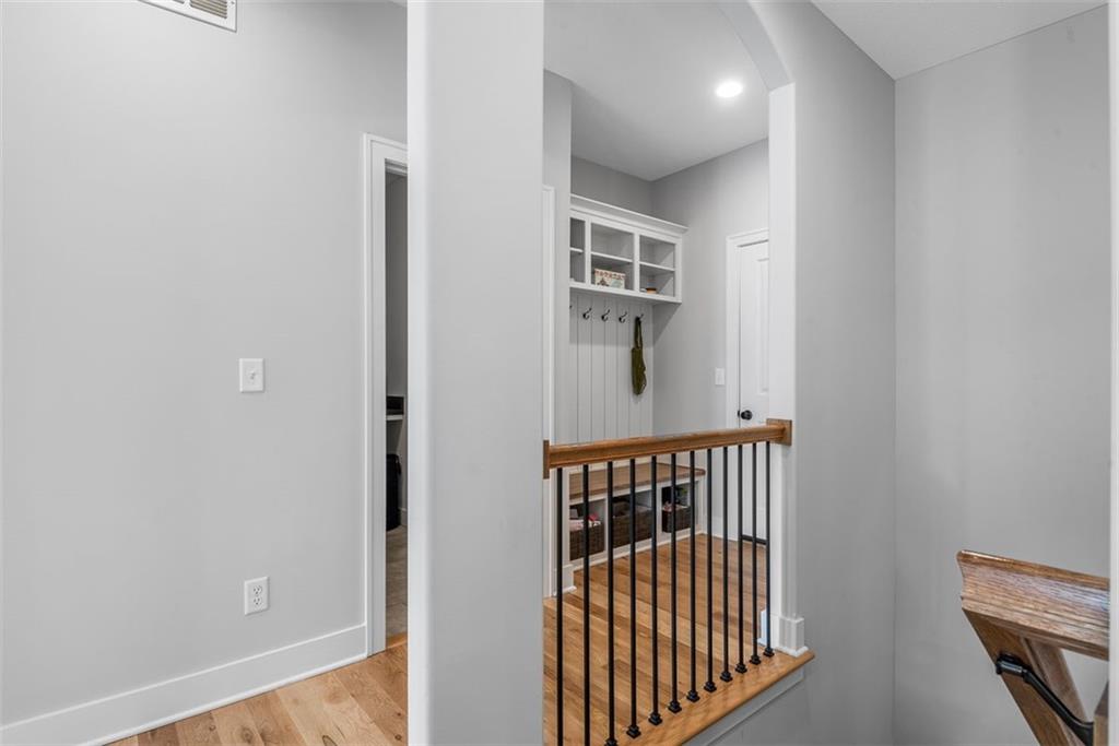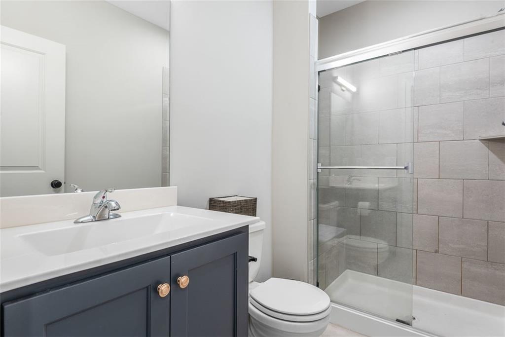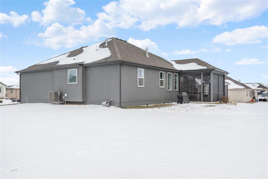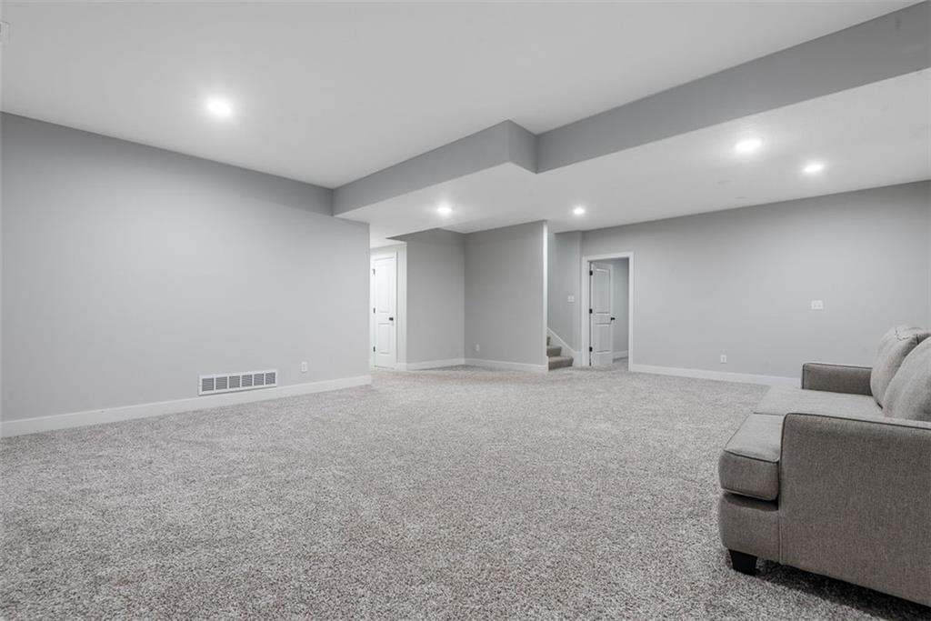 Beautiful, large bedrooms 4 + 1 (non-conforming) = 5 possible bedrooms, 3 bathrooms, Reverse 1.5-story home with 2 walk-in closets in Primary Bedroom! The open main level seamlessly connects the kitchen, dining, and living areas, showcasing hardwood floors, vaulted ceilings, updated trim, and abundant natural light. The gourmet kitchen is a chef’s dream, featuring quartz countertops, tile backsplash, gas cooktop, large walk-in pantry, and generous workspace—perfect for entertaining. Family Room stuns with a floor-to-ceiling fireplace, vaulted ceilings accented by wood box beams, designer ceiling fan, and custom window coverings. An office tucked to the side offers the perfect private workspace. The Primary Suite is a true retreat with vaulted ceilings, a luxurious stand-alone soaker tub, separate tiled shower with dual shower heads, two vanities, and again TWO walk-in closets. The main-floor laundry offers convenient direct access from the primary closet. The finished lower level provides a spacious rec room, already stubbed for a future bar, along with three additional bedrooms (one non-conforming), a full bath, and plenty of storage space. Relax and enjoy your morning coffee on the screened-in covered deck. Brookwood Farms is an active, social community offering amenities for all ages, including a community pool and cabana, playground, fishing pond, and walking trails. Come see everything this beautiful home—and Brookwood Farms—has to offer!