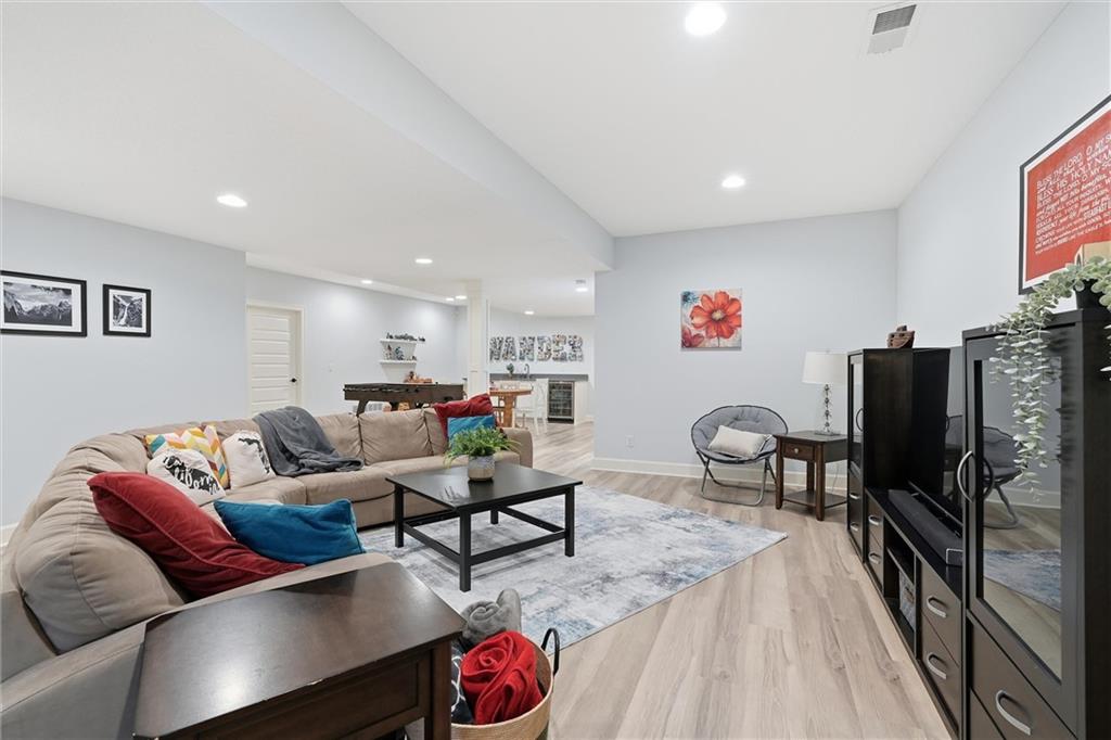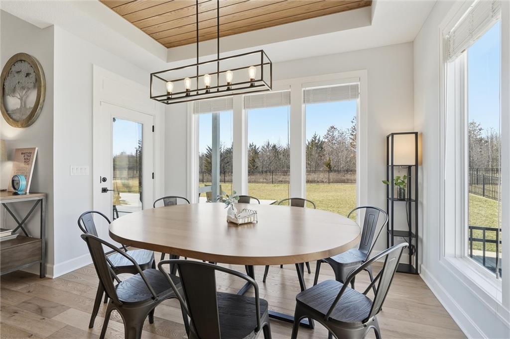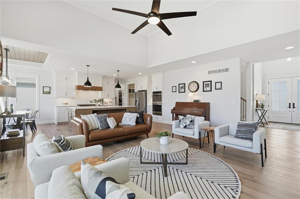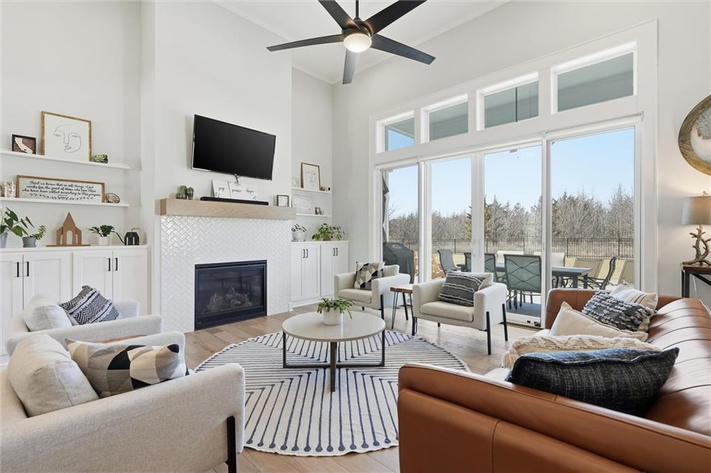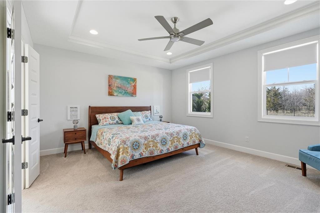 Why wait for new construction when you can move into a beautifully designed 1.5-story home completed in 2022? Enjoy the benefits of newer construction in a quiet, established neighborhood without ongoing construction traffic and noise. This thoughtfully designed layout offers seamless flow and high-end finishes for everyday living and elevated entertaining. Sellers are motivated and welcome serious offers. A double-door, two-story entry opens to a light-filled main level featuring a luxurious primary suite with private bath and connected laundry room, a dedicated office with French doors, and a striking two-story great room that creates a grand yet inviting atmosphere. At the heart of the home, the gourmet kitchen showcases a 48” JennAir 6-burner gas range, double ovens, floor-to-ceiling cabinetry, deep lower cabinets with pull-outs, and a spacious butler’s pantry adjacent to a walk-in pantry—ideal for hosting and everyday efficiency. Upstairs, three bedrooms with en-suite baths provide comfort and privacy. The finished lower level expands the living space with luxury vinyl plank flooring, a wet bar, guest bedroom, full bath, and versatile bonus room. Situated on a premium fenced lot backing to green space, the home offers open views and beautiful year-round sunsets, along with an expanded concrete patio and walkway with room for a future pool. Additional highlights include a tankless water heater, generous storage, zoning to Blue Valley School District, approximately 10 minutes to St. Thomas Aquinas High School, and convenient access to shopping, dining, and recreation throughout South Johnson County. Community amenities include a pool, playground, and walking trails. A thoughtfully designed home blending quality craftsmanship with comfort in a highly desirable setting.