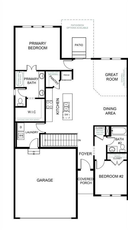 The Twin Tupelo home plan offers everything you need on a single level for ease and convenience. This beautiful home features an open-concept kitchen that overlooks the living and dining areas, creating a spacious and connected environment. The primary bathroom has a spa-like ambiance with its expansive countertop, double sinks, a walk-in shower, and a generous walk-in closet. The second bedroom is versatile, ideal for guests or as a home office.