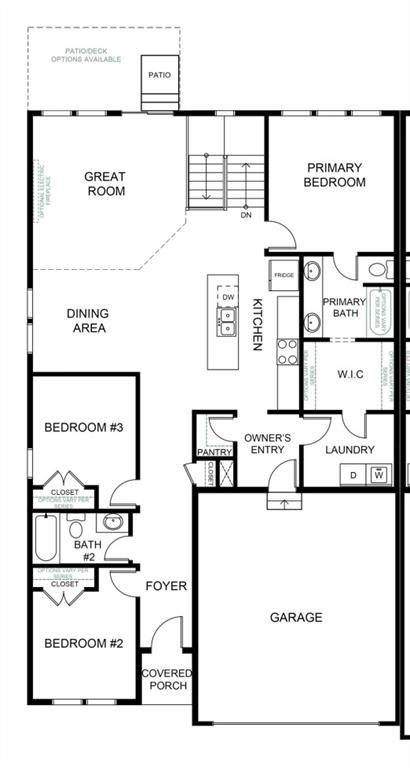 Our Twin Wildflower home plan embodies the ideal ranch layout, offering both style and functionality. As you enter through the front door, you’re welcomed by a spacious entryway leading into a bright, open-concept kitchen, dining, and living area—perfect for relaxation and entertainment. The main floor features three well-appointed bedrooms, including the primary suite, which boasts a beautiful shower and a generous walk-in closet. The second and third bedrooms are versatile, easily accommodating guests or serving as a home office, with a full bath conveniently located between them.
