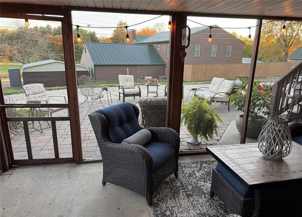 Beautifully remodeled raised ranch in Country Club Village-Andrew County & Savannah School district! Welcome home to this 3-bedroom ranch located in the conveniently located neighborhood of Andrew County. This quiet horseshoe street is just .3 miles from John Glenn Elementary School and only a 12-minute drive to Savannah High School-making it an ideal location if you are looking to get into the Savannah School District. This move-in ready home features a bright eat-in kitchen with ample cabinet space, and a Pella sliding door that opens to a spacious deck. The living room offers custom-built bookshelves & cabinets, along with a wood burning fireplace and a built-in insert for a flat screen TV (included) and surround sound. The primary bedroom includes French doors that open to the deck, which spans the entire length of the home and overlooks a beautifully designed backyard entertainment area complete with a brick patio and built-in firepit-perfect for gatherings and relaxing evenings. A long driveway provides plenty of parking and creates a large, safe area for kids or pets to play, ride bikes or shoot hoops. The newly carpeted finished recreation room adds even more living space and includes another fireplace, built-in cabinets with a sink, and a small refrigerator-ideal for entertaining. An electronics cabinet, stereo system and outdoor Bose speakers extend the fun to the screened-in patio area. Also located on the lower level are the laundry room and third full bathroom (washer & dryer stay). The two-car garage includes a workbench and space for an additional refrigerator and/or freezer. Recent upgrades include new windows and LVP throughout. All your shopping and dining needs are just 1.3 miles to the North shopping area. This home offers comfort, convenience and outstanding indoor & outdoor living-don't miss your opportunity to make it yours!