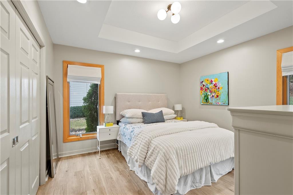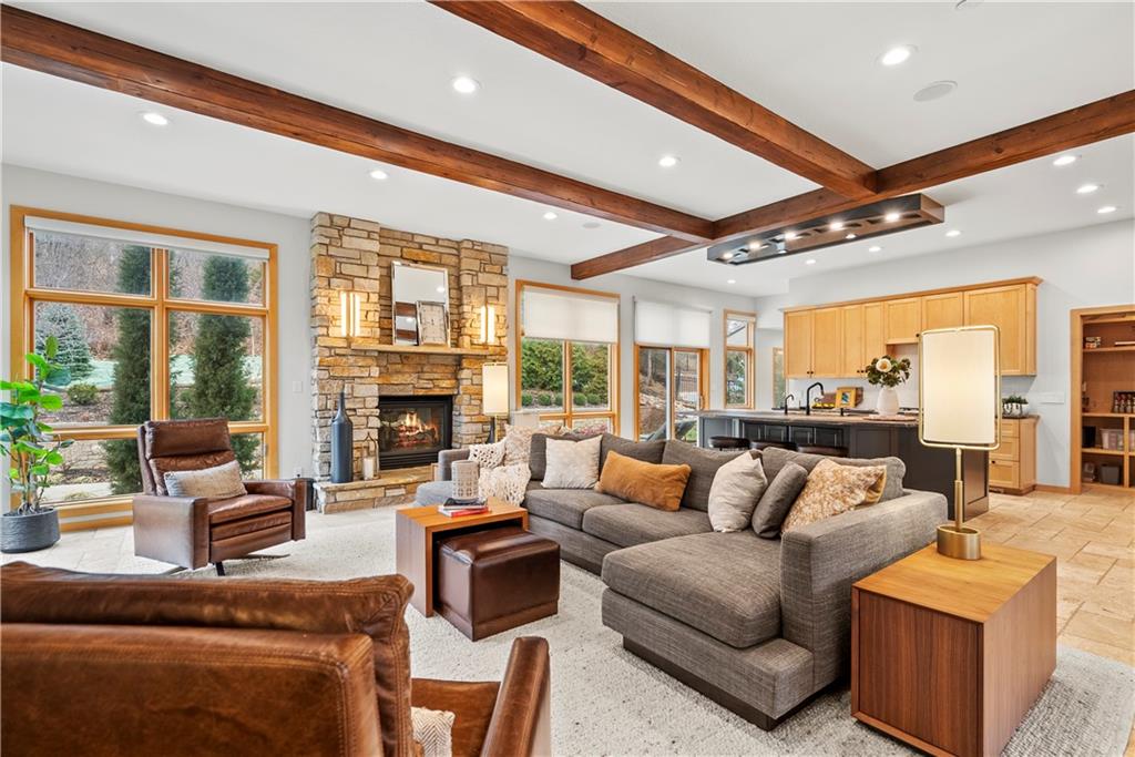 Seller Offering to Pay $40,000 1x Lake Quivira Required Membership Fee with Acceptable Offer. Experience everyday living that feels like a getaway. This stunning lakefront home is filled with natural sunlight & showcase lake views that bring the outdoors in. Significant Updates & Improvements to the Main Lvl, Finished Lower Lvl & Garage make this home a Perfect setting for both relaxing & unforgettable entertaining. Walk into the Grand Front Entrance with Natural Stone Travertine Flooring & High Ceilings. Enjoy gatherings in the Formal Dining overlooking the lake. The Large Great Rm with Natural Gas Stone Fireplace, High Ceiling with Natural Wood Beams & Wall of Windows with Nice Architectural Details. The Open Kitchen Showcases a Large Island with Honed Granite & Counters, SS Appliances, 5-Burner Gas Cooktop, Warming Drawer, New Dishwasher, New Beverage Fridge & a Walk-In Pantry. Just off the Kitchen is a Spacious Updated Laundry/Mudrm/Home Office with Blt-Ins & Dedicated Desk Area with New Checkered Tile Flooring. The Main Level Offers 3 Bedrms, All with Newer Laminate Flooring & a Jack-in-Jill Bathrm between 2 Bedrms. Both main floor Bathrms have been updated with New Showers & Natural Stone Counters. Additional upgrades to the Upper Lvl Primary Suite have Just Been Completed. The Upper-Level Primary Suite is a Private Retreat, Complete with a Loft with Built-Ins, Separate Sitting Area, 2 Walk-In Closets & Private Office.T he Primary Bath Includes Dual Vanities with New Countertops, Newer Soaker Tub & a Large Walk-In Shower with 2 Shower Heads. Secondary Closet Off Primary Bedrm May Be Adaptable to a 2nd Laundry Area. Office Off Primary Bedrm May Accommodate a Lift or Elevator from the Laundry Area Off the Kitchen & Garage (Buyer to Confirm). The Finished Lower Lvl Features New Laminate Flooring, Exercise Rm (Easily Used as a Non-Conforming 5th Bedrm), New Half Bth, Wine Rm Area & Ample Storage. 1x $40,000 Lake Quivira Required Membership Fee. Dock Site #222