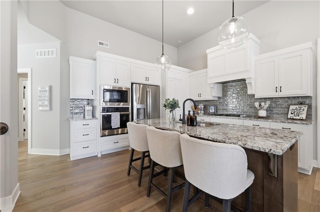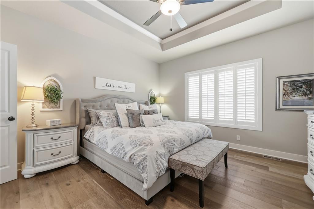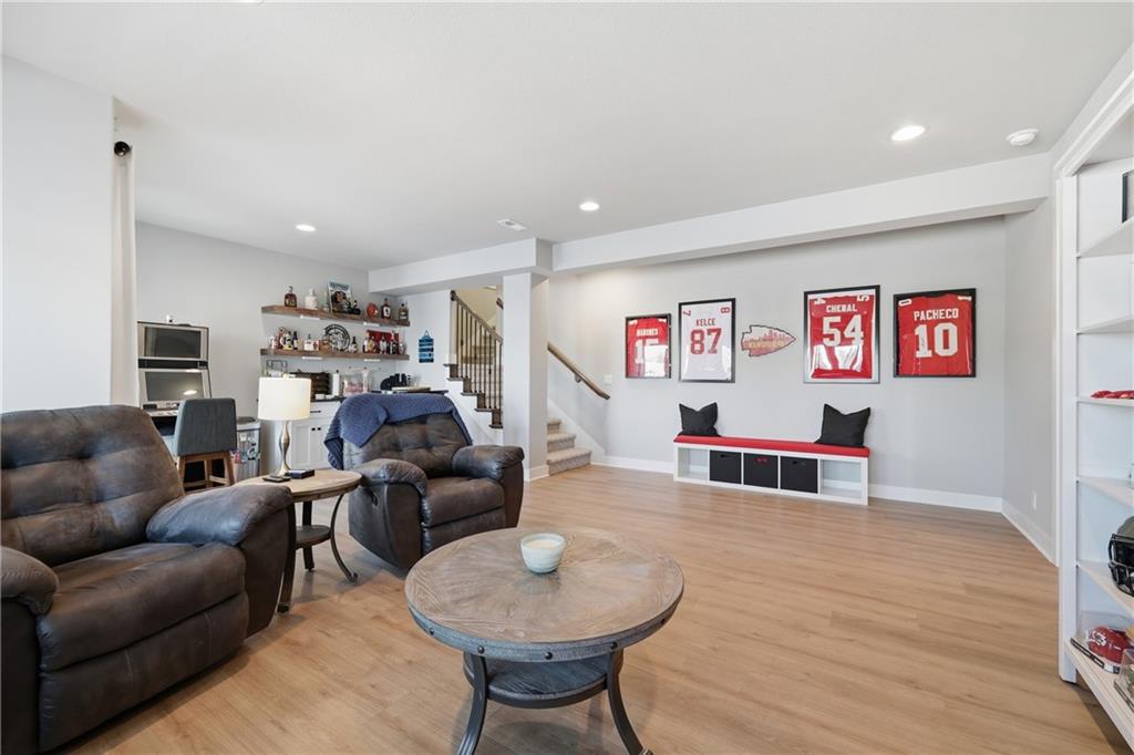 Come take a look at this charming ranch built by award-winning SAB Construction, located in the desirable and growing Hook Farms neighborhood within the highly sought-after Lee’s Summit School District!This beautifully designed 4-bedroom, 3 full-bath home offers an open, light-filled layout with custom plantation shutters throughout. The chef’s kitchen features granite countertops, stainless steel appliances, a gas stove, and a large island—perfect for entertaining. Hardwood floors on the main level and luxury laminate flooring in the lower level provide both style and durability.Relax in the inviting living space complete with a cozy gas fireplace, gas heating, and a built-in humidifier for year-round comfort. The finished basement offers additional flexible living space, along with an unfinished area ideal for extra storage. **SELLER IS OFFERING $6,000 IN SELLER PAID CLOSING COST, making this home an even more incredible opportunity!**