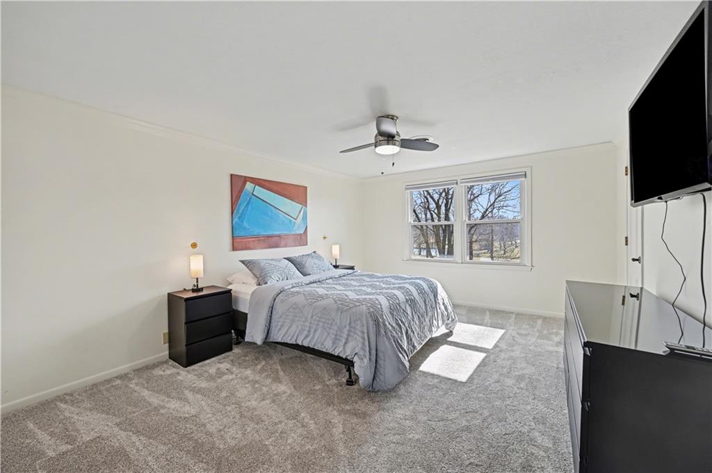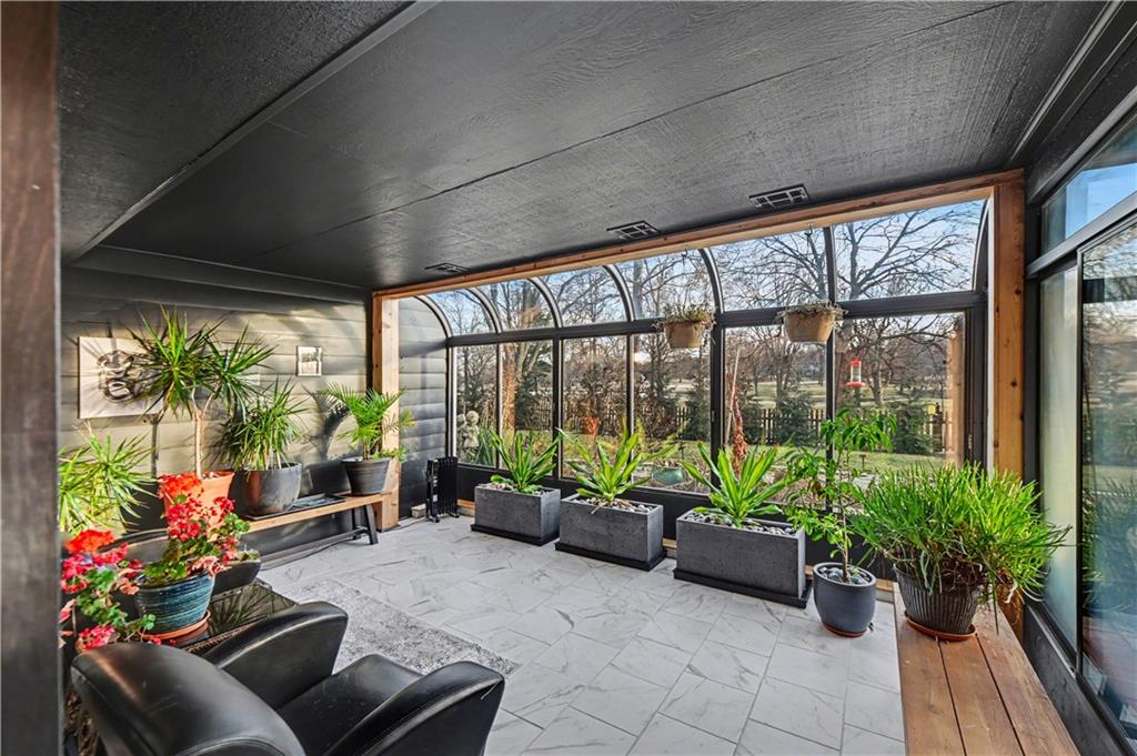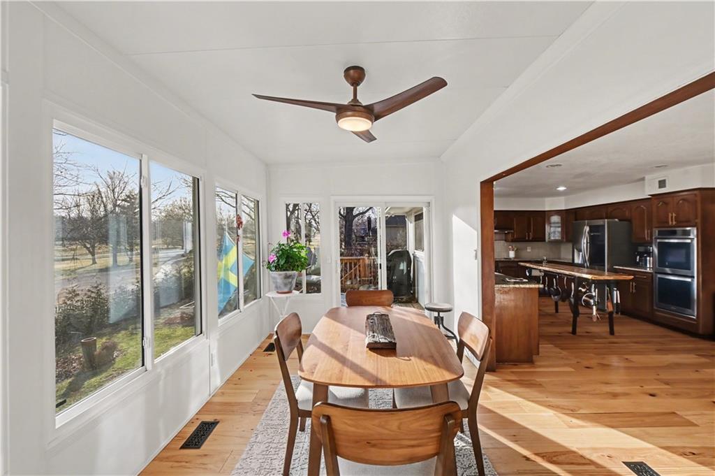 Stunning 1.5-story estate offering 4 bedrooms, 4.1 baths, a 2 car garage, and nearly 5,600 square feet, perfectly positioned on over half a acre lot along the golf course at Blue Springs Country Club. From the moment you arrive, the charming front entry welcomes you into a light-filled home designed to impress. Soaring ceilings with striking wood beams elevate the living room, where a beautiful fireplace anchors the space and walls of windows frame breathtaking golf course views. Just off the entry, a private main-level office provides the ideal work-from-home setting. The open-concept kitchen features granite countertops, abundant cabinetry, and flows seamlessly into a sunlit eat-in area/sunroom that opens onto the upper deck. Do not miss the laundry and mud room that is off the oversized garage. The main level also features a spacious primary suite with a beautifully updated spa-like bath, complete with double vanities, soaking tub, and walk-in closet. An additional bedroom and full bath are located on the main floor. Upstairs, you’ll find two oversized bedrooms and a full bath, offering comfort and privacy for family or guests.The walkout lower level is an entertainer’s dream and not to be overlooked. Enjoy a massive family room with bar area, dedicated exercise room, all-seasons room, full bath, fifth non-conforming bedroom, and even a 3rd garage with two workshop spaces — ideal for hobbyists or extra storage. The meticulously landscaped yard is truly exceptional, featuring an upper-level sitting deck, lower-level patio, and established vegetable gardens ready for the next growing season. This home has been impeccably maintained updated with fresh interior paint, refinished hardwood floors, new lighting, an updated primary bath, and more. A rare opportunity to own a golf course retreat that combines elegance, comfort, and functionality — this is a home you must experience to truly appreciate.