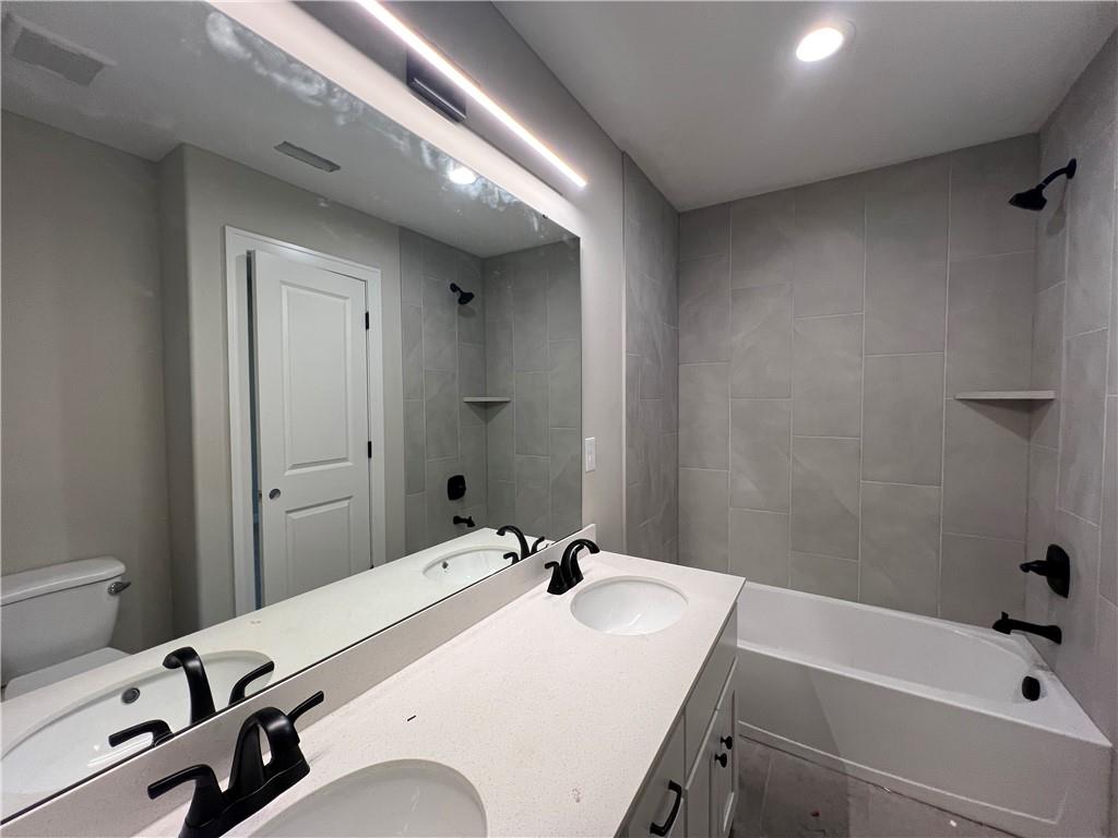 NEARING COMPLETION on this new version of the Wesley III with an added pocket office. Beautiful trim work throughout the home. Hardwood floors on the main floor, including the pocket office. Custom fireplace with built-in arch top shelves. Linear, heat-producing electric fireplace with remote. Trim accent wall in the dining room with modern arched doorways. Bull-nose sheetrock corners. Custom kitchen with the Estates cabinet package, which includes a built-in microwave cubbie with drawers below, a hood vent insert with ducting to the exterior, and a built-in trash drawer. Added backwall cabinet extension, Level 2 quartz on the island. A custom prep pantry with a stained prep area, a built-in magnet board, and a can stack. Custom floating desk and shelf in a pocket office. The secondary bedrooms all include the vaulted ceiling upgrade package and are wired for future ceiling fans. The laundry room includes custom shelving. The master bedroom includes a beautiful trim accent wall and LED color-changeable lighting in the vaulted tray ceiling. Master Bath includes a free-standing tub and an incredible custom shower. Quartz tops in all bathrooms and kitchen surround. Taxes and square footage are estimated. Less than 15 days to be move-in ready.