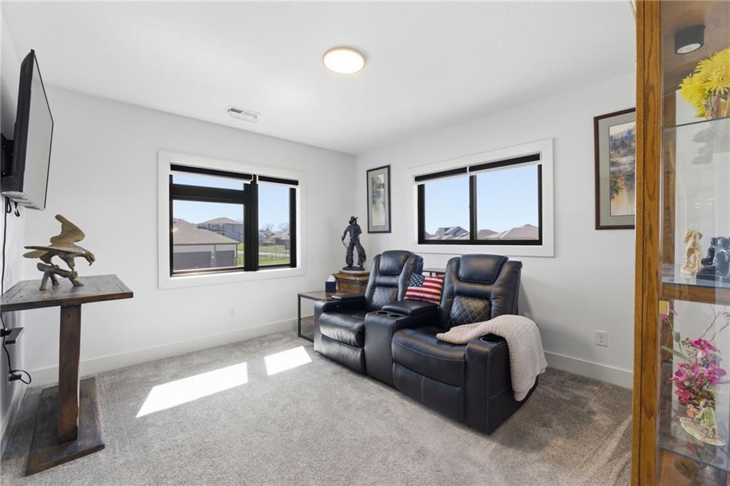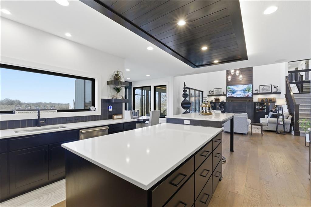 This beautiful nearly new 2 story has it ALL! Immaculate and stylish with high end finishes and GORGEOUS inside and out! The home is loaded with upgrades! You'll love the soaring high ceilings as you step into the Great Room with custom lighting, tons of natural light from oversized windows, and a unique floor to ceiling fireplace with built ins. Quality hardwood flooring runs throughout the main level. The fully equipped kitchen boasts bright white quartz countertops, rich, dark custom cabinetry, indirect lighting, and high end appliances, including a gas cooktop. The kitchen island is massive with plenty of room for entertaining. The kitchen also has a large walk in pantry, as well as a convenient second pantry closet. The upper level has 3 bedrooms, including the stylish primary bedroom with onsuite bath, offering all of the comforts you would expect. The lower level provides plenty of additional living space including a spacious family room with wet bar, game room, the fourth bedroom, and full bath. Additionally there is a generous unfinished storage area. Step out of the large, oversized sliding glass doors in the Great Room and enjoy the peaceful and secluded outdoor space of this home, featuring a huge 20 X 10 covered deck, along with a retractable awning to offer even more shade and comfort. Relax in the 6 person hot tub, which stays with the home. You’ll love the view of the scenic oversized pond just beyond the backyard, complete with walking trails as well as fishing. Monticello is a beautiful newer single family community in Lee's Summit with trails, a pool, and ponds near Fleming Park. Enjoy all the services and amenities this neighborhood has to offer.