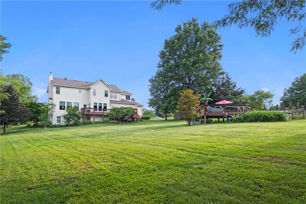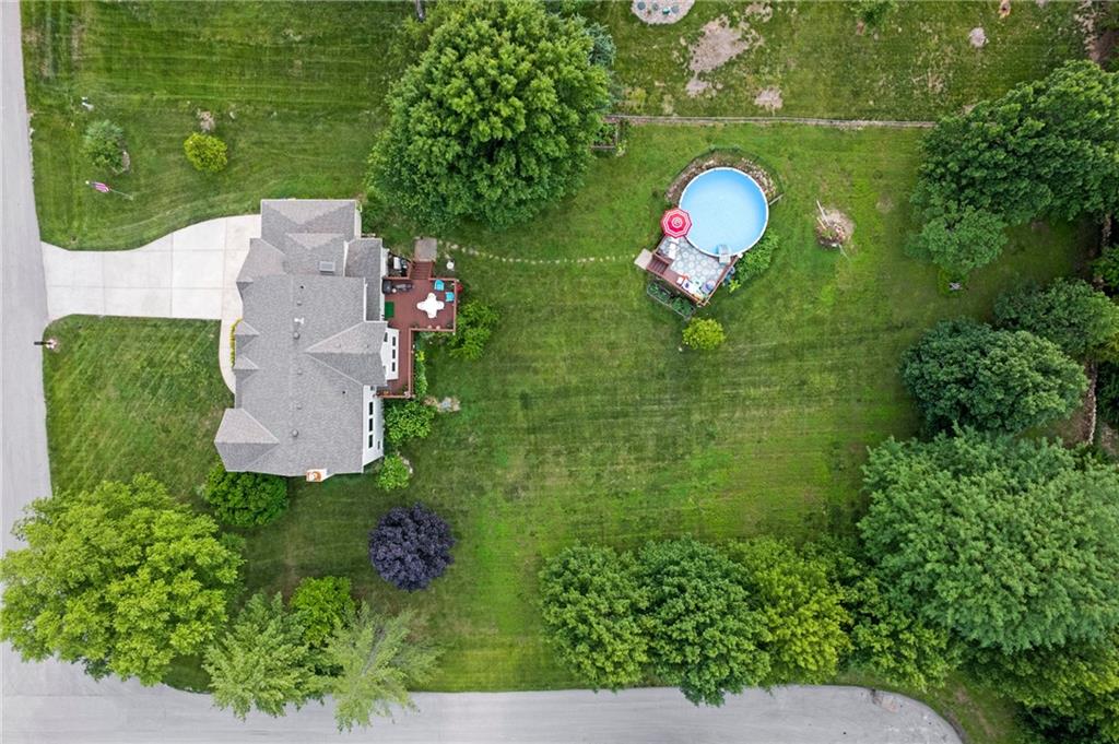 Welcome to this beautifully maintained 4-bedroom, 3.5-bath home nestled on a serene 1-acre cul-de-sac lot in the De Soto School District. Surrounded by mature trees and peaceful outdoor space, this property offers the perfect blend of privacy and comfort. Inside, you’ll find a spacious kitchen featuring granite countertops, a gas stove, and stainless-steel appliances, all opening seamlessly to the inviting great room with a cozy fireplace—ideal for everyday living and entertaining. An additional room on the main floor is separated by glass French doors and provides flexibility for a home office, playroom or sitting area. The primary suite is a true retreat, complete with a versatile bonus space perfect for a home office, nursery, workout room, or sitting area. The large primary bathroom is topped off with a heated bathroom floor and very large walk in closet with attic access space behind for more storage. The finished walk-out basement expands your living options with additional living space, recreation room or even an extra bedroom! A full bathroom, closet, and generous storage are available. Step outside to enjoy the above-ground pool with durable composite decking, perfect for summer gatherings. The 3-car garage has extended length stalls. Recent updates and highlights include: Roof approximately 1.5 years old; New gutters (2025); Windows less than 10 years old and professionally wrapped to help seal out noise and prevent wood rot; HVAC system approximately 5- 6 years old, James Hardie low maintenance siding. With its flexible layout, major system updates, and prime location, this home offers exceptional value and move-in-ready comfort. Don’t miss this rare opportunity!