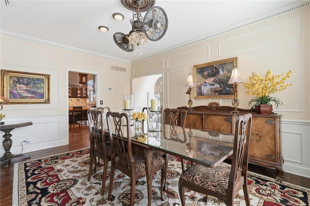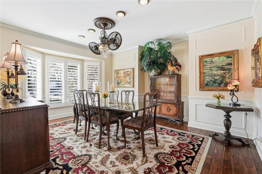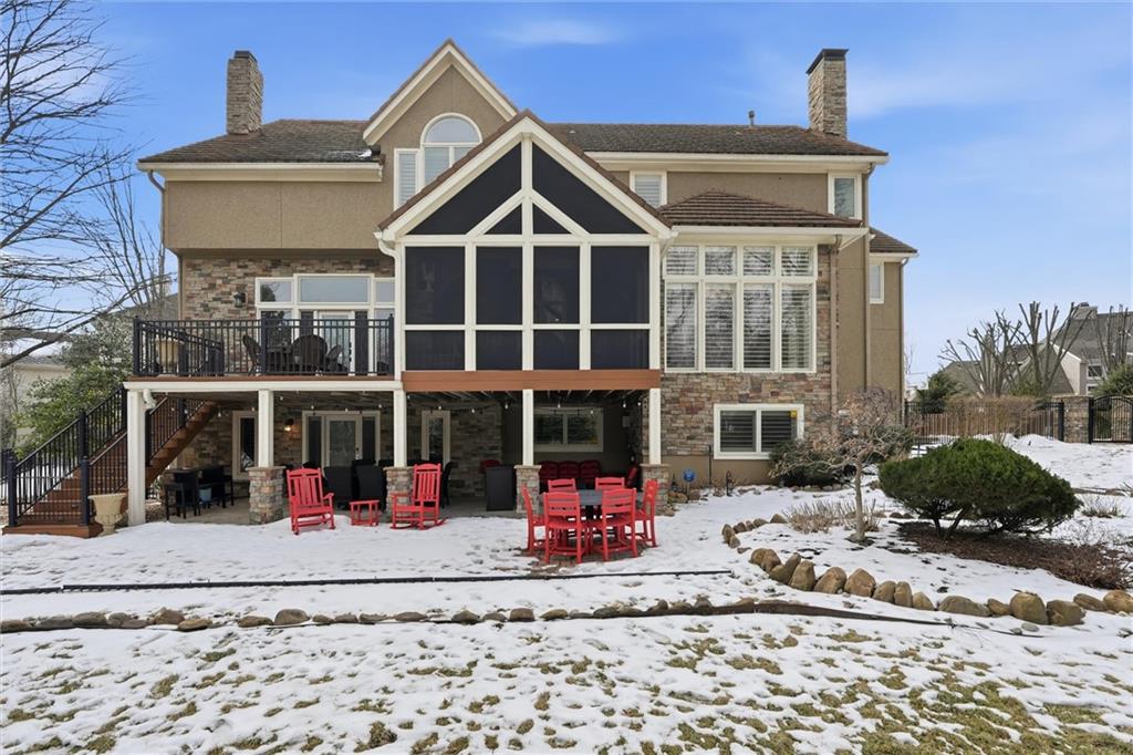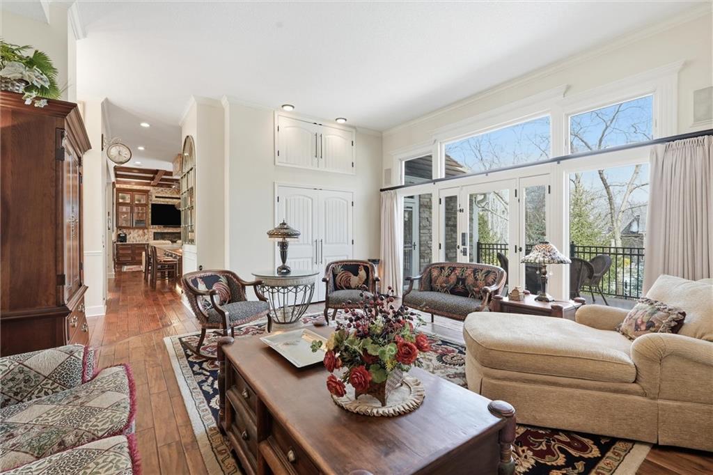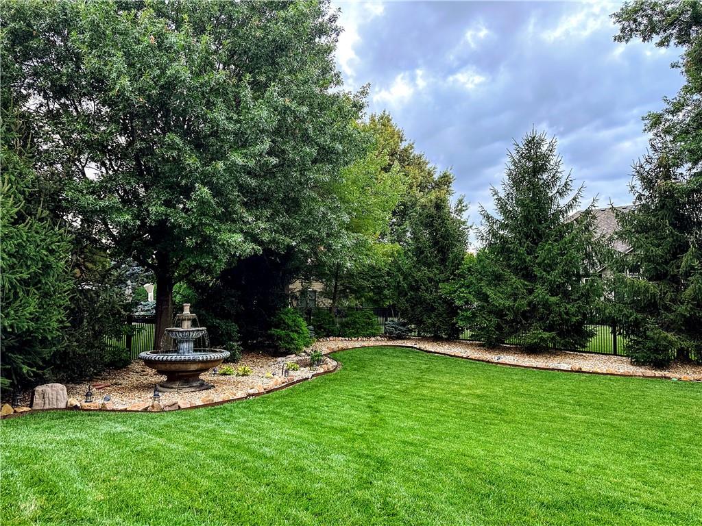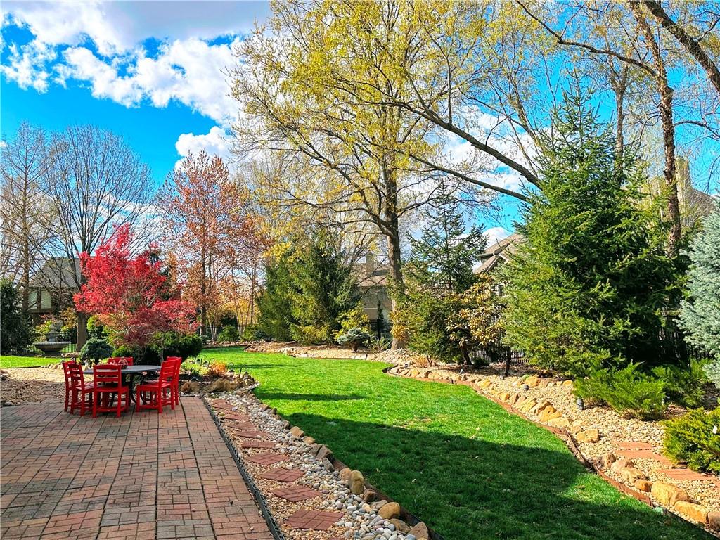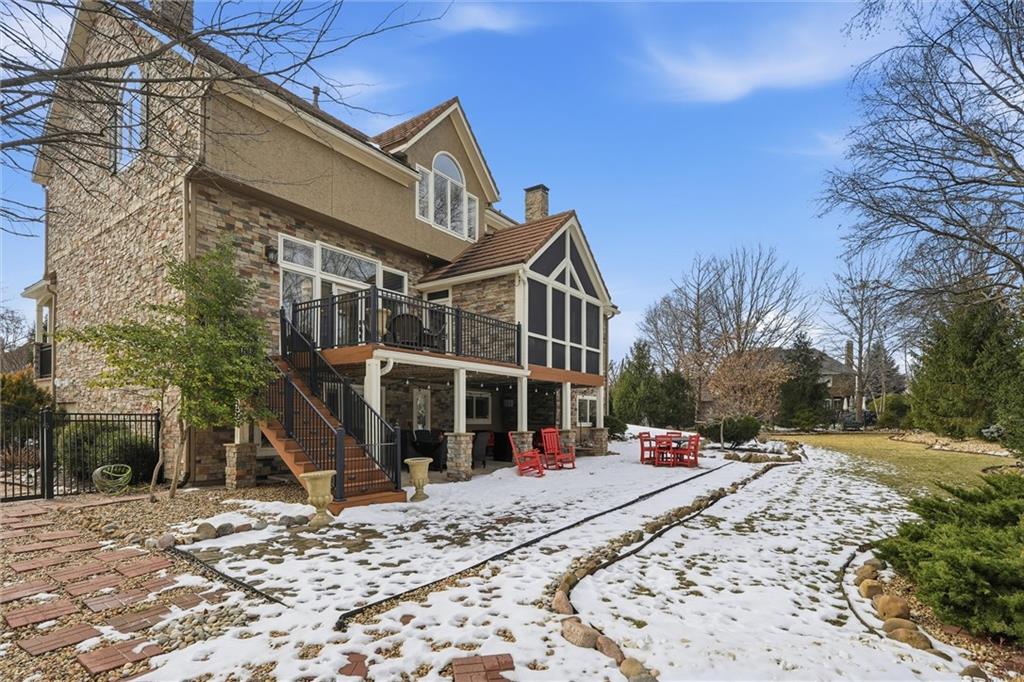 Exceptional luxury living awaits in Nottingham by the Green. Tucked on a quiet cul-de-sac, this updated residence offers 5 bedrooms plus nursery/office, 5.1 baths, four living areas, and two full kitchens, making it ideal for entertaining, multigenerational living, or extended guest stays. The home features laundry on each level, abundant storage, and custom built-ins throughout. The main-level gourmet kitchen is a showpiece, featuring high-end appliances, dual dishwashers, dual-fuel range with grill and griddle, steam oven, built-in refrigerator and freezer towers, wine refrigerator, trash compactor, two sinks with instant hot water, walk-in pantry, custom cabinetry, and granite counters with stone accents. A spacious eating area adjoins the kitchen and hearth room. The home offers four bedrooms upstairs and two sleeping areas in the basement, one serving as a secondary primary suite and an additional flex room. There is also a built-in Murphy bed in the living area. All bathrooms have been updated, featuring heated tile floors in both primary baths, towel warmers, custom vanities with granite, and thoughtful details throughout. The finished walkout basement functions as a home of its own, complete with living and dining areas, full kitchen with professional appliances, gas fireplace, engineered wood and tile flooring, laundry room, specialty vented exterior doors, and abundant storage, including plumbed unfinished utility space. The oversized side-entry garage offers extra depth, epoxy floors, insulated carriage doors, insulated walls/ceiling, smart openers, overhead storage, insulated attic, ceiling fans, and exceptional functionality. The exterior is equally impressive, with elegant stone and stucco finishes, expansive windows, and multiple outdoor living areas. The property sits on a meticulously landscaped lot with mature trees, manicured gardens, and lush green spaces. Enjoy the spacious patio and room for entertaining or relaxing outdoors.