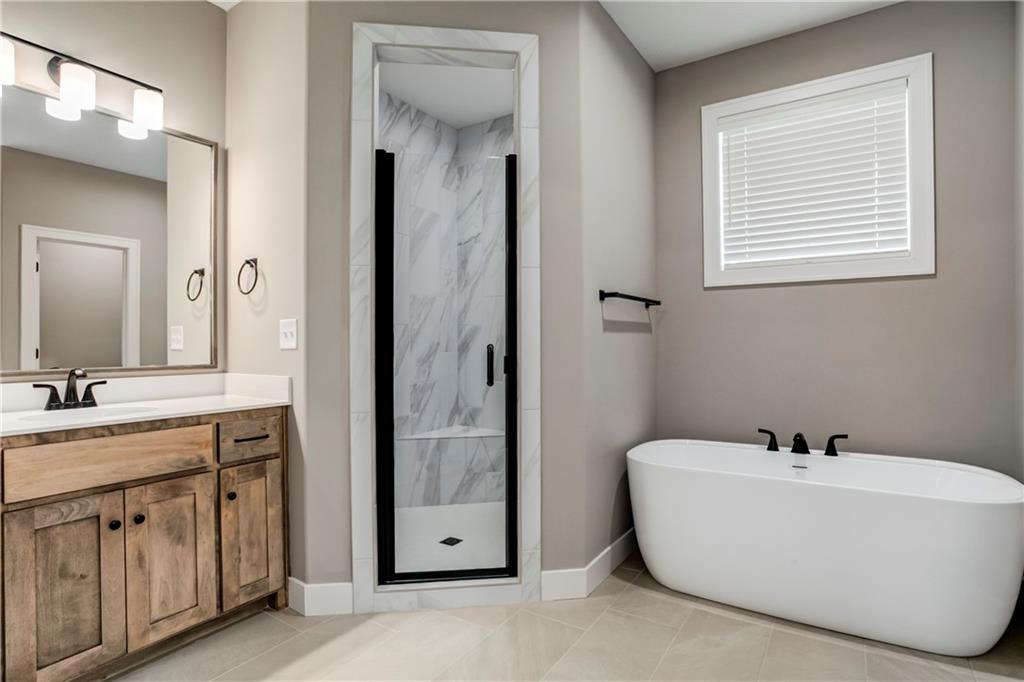 NEW LAYOUT of the Everly Plan by Martens Family Enterprises, Inc. Expansive covered the front porch, and a covered patio in the back by the garage. Hardwoods in the great room, kitchen, dining, and mudroom. Main level living includes the master bedroom on the main level. Custom Accoustic inlay trim wall to give that perfect finish to the master bedroom. The master bathroom includes a large shower, a free-standing tub, separate vanities, and a large closet with a private laundry area in the master closet. Built-in custom bootbench, stained kitchen cabinets, upgraded backsplash, matte black plumbing upgrades throughout. Full-height stone fireplace with electric fireplace insert. The second floor includes a loft space with a closet, 3 spacious bedrooms, and now two baths upstairs with a separate laundry area for the second level. Large bedrooms. Expanded driveway width to allow for additional back porch/patio space. A separate door from the back porch to the garage, high-lifted garage door tracks to allow more space. The garage includes a garage door opener with a keypad. Also included are buried gutter downspouts and sump pump discharge upgrades. 2-inch faux wood blinds are STANDARD in most areas. Taxes and Sq ft are estimated. HOA INCLUDES: lawn mowing, All 4 Stonebridge Pools and 2 clubhouses, gym access, sports courts, sprinkler activation/winterization, and snow removal (some restrictions apply). Taxes and sqft are estimated. 1 virtually staged photo.