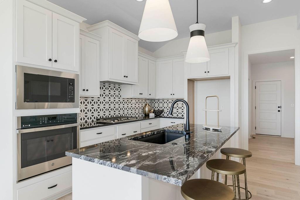 BODROCK HOMES VILLA HOME "THE CAMAS" IS A 3 BEDROOM 2.5 BATH. THIS HOME IS ON A WLAKOUT LOT WITH AN EXPANSIVE VIEW TO THE SOUTH. THIS HOME IS DESIGNED FOR EVERYDAY LIVING AND THE ENJOYMENT OF ENTERTAINING FAMILY AND FRIENDS. THIS REVERSE 1.5 STORY PLAN BOASTS AN APPEALING EXTERIOR WITH STONE PILLARS AND A COVERED FRONT PORCH. ONCE INSIDE THE FOYER, ENGINEERED HARDWOOD FLOORS FLOW THROUGHOUT THE MAIN LEVEL, WITH CARPET IN THE PRIMARY BEDROOM. OPEN AND SPACIOUS PLAN WITH VAULTED CEILING WITH FIREPLACE TO THE CEILING, DRY BAR, OPEN CONCEPT KITCHEN AND DINING AND WALK-IN PANTRY. PRIMARY BEDROOM AND BATH ON THE MAIN LEVEL WITH FREESTANDING TUB AND ZERO ENTRY SHOWER. LOWER LEVEL IS LARGE WITH FAMILY ROOM WITH 2 ADDITIONAL BEDROOMS AND BATHROOM. MISSION RANCH IS A BEAUTIFUL PLANNED NEIGHBORHOOD WITH AMENITIES THAT INCLUDE A CLUBHOUSE WITH AN EXERCISE ROOM, PARTY ROOM, PLAYGROUND, POOL, SPORT COURT, PICKLEBALL, BOCCE BALL AND TRAILS AND AN ELEMENTRY SCHOOL IN THE NEIGHBORHOOD. THIS HOME IS ALSO LOCATED IN THE MAINTENANCE PROVIDED SECTION OF THE NEIGHBORHOOD. IN THIS SECTION FOTH NEIGHBORHOOD, WE WILL ALSO PROVIDE LAWN MAINTENANCE AND SNOW REMOVAL. MISSION RANCH IS CENTRALLY LOCATED TO THE HIGHWAY, SHOPPING AND ENTERTAINMENT. DON'T MISS WHAT WE HAVE TO OFFER. STILL TIME TO MAKE SELECTIONS ON THIS BEAUTIFUL HOME.