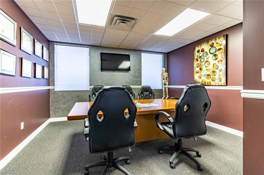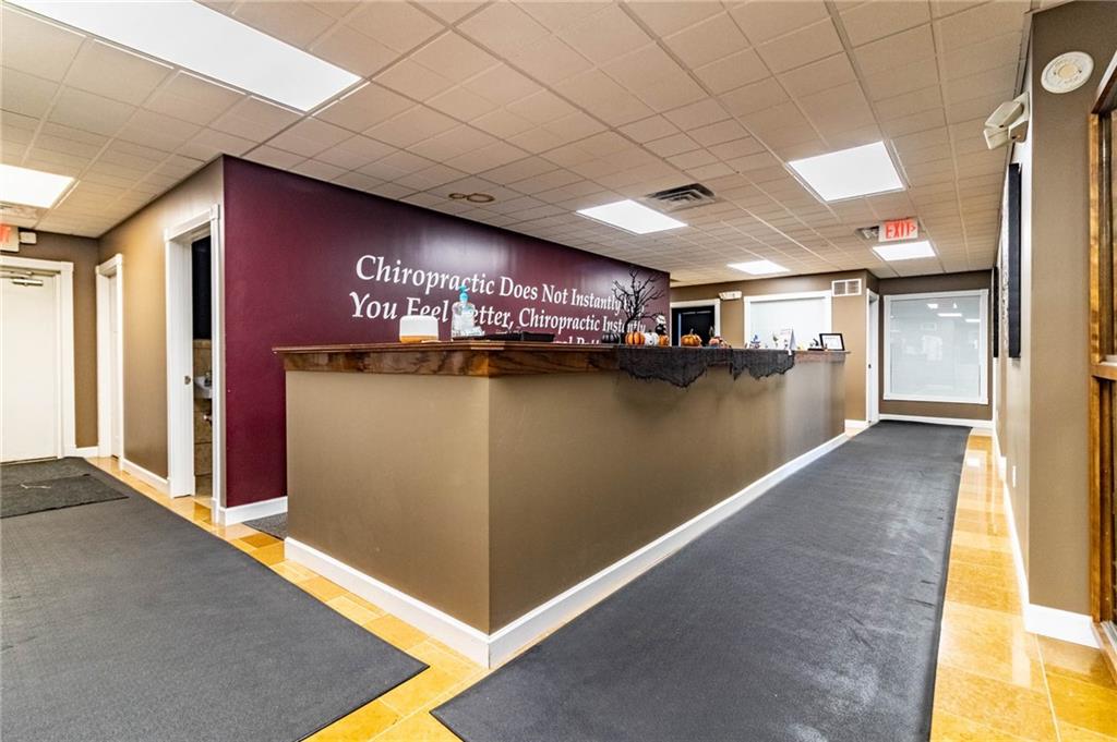 Excellent Opportunity to own a spacious, 3600 sq ft, well maintained, commercial building located in a high traffic area. This property is currently being used as a successful, thriving, chiropractic clinic and there is the option to purchase the business and assets in addition to the building. Clinic offers 7 treatment rooms, 2 offices, 3 restrooms, kitchen, laundry, conference room, 2 storage rooms, 2 reception areas and a waiting room. One of the bathrooms includes a shower and is a private bathroom located off an office. This property is zoned general business so its suitable for office space, restaurant, retail, or other service-based business... options are endless. Features ample parking/detached 1 car garage could be used for additional storage/3 HVAC units/High-end siding/Beautiful Signage/ This building is set up in a way that the back portion could be rented out for additional income or expand the existing practice.