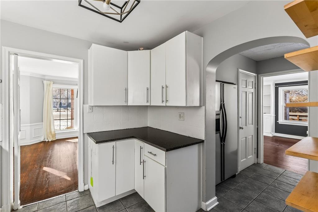 This charming 2-story home built in 1940 exudes character, blending historic details with thoughtful modern updates. The inviting, picturesque front porch welcomes you into a spacious family room filled with natural light, featuring a wood-burning fireplace, built-in bookshelves, and access to an enclosed side porch. A large formal dining room offers the perfect setting for gatherings, while the updated kitchen impresses with granite countertops, stainless steel appliances, soft-close cabinets and drawers, and a pantry. A cozy eat-in breakfast nook with built-ins adds even more charm. Gorgeous hardwood flooring, textured ceilings, and updated light fixtures run throughout. The primary bedroom features double closets, a full bath, and access to the roof deck. Secondary bedrooms are generous in size with ample closet space. The finished lower level offers a fun, spacious rec room complete with a wet bar and built-ins—ideal for entertaining or relaxing. Enjoy outdoor living in the manicured, fenced backyard with a patio and stone paver walkway. The expanded 2-car garage provides extra space, plus there’s an extra-wide private driveway. Major updates include roof, furnace, hot water heater, Hardie Board siding, Andersen thermal windows, and more. Prime location with convenient access to The Country Club Plaza, Brookside, and all the amenities you love. Don’t miss this one—it’s full of charm, space, and style!