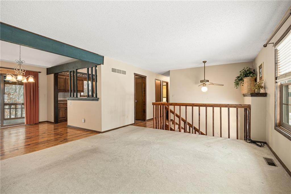 Location, Location, Location! Don't miss this 3 bedroom, 2.5 bath home offering both comfort and natural beauty. With a finished basement and two cozy fireplaces, there's plenty of space to relax year round. The large 2 car garage provides ample storage and workspace along with easy stairway access to attic storage. Outside, enjoy a covered, screened in back deck for shaded afternoons and an open deck section perfect for starry nights. The kitchen has custom cabinets with pull out shelving, stainless steel appliances and a gas stove. Laundry is set up for the main floor and in the basement half bath. From the basement you can walk-out to a covered patio work or sitting space with a shed. Make an appointment now, before it's too late. Seller can have washer and dryer moved downstairs and cap off water lines for upstairs closet if wanted as well. All appliances stay with the home including the washer, dryer and two refrigerators.