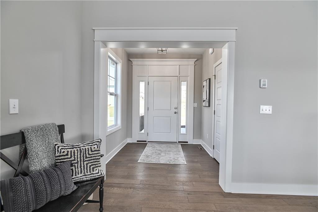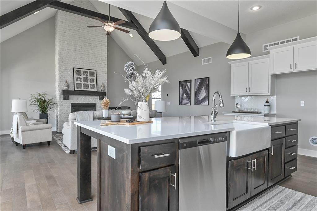 This home is perfectly situated at the end of a quiet cul-de-sac, adjacent to a public golf course. The stunning Reverse 1.5-Story Aspen by Prieb Homes offers a spacious, open floor plan filled with impressive details throughout. Soaring vaulted ceilings with stained beams and striking stonework surrounding the fireplace create a grand first impression upon entry. The kitchen is designed for both entertaining and everyday living, featuring a massive granite center island and ample workspace. The primary suite serves as a relaxing retreat, complete with an adjacent bonus office space and a conveniently located laundry room with built-in cabinetry. The spa-like primary bath includes a custom shower and separate vanities. The finished lower level expands the living space with a wet bar, two additional bedrooms, and a full bathroom—perfect for guests or recreation. Step outside to the large covered 14x12 deck and enjoy peaceful views. Room sizes and taxes are estimated, and some features may not be available in this spec home. Buyer’s agent to verify all information. Some Pictures are of completed plan, decor selections and front elevation orientation to vary. Expected completion June 2026