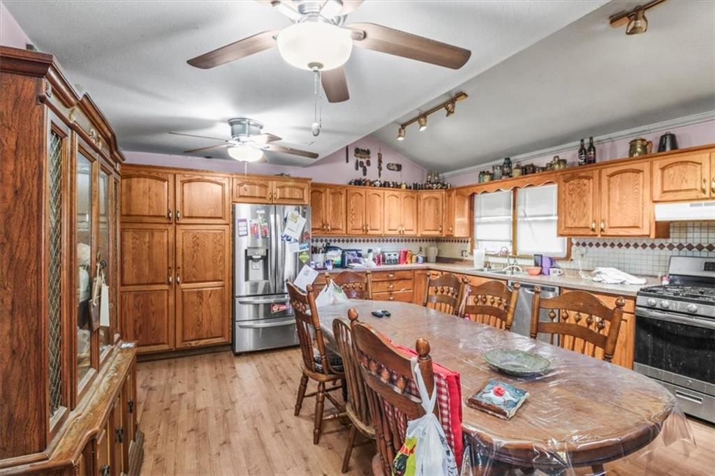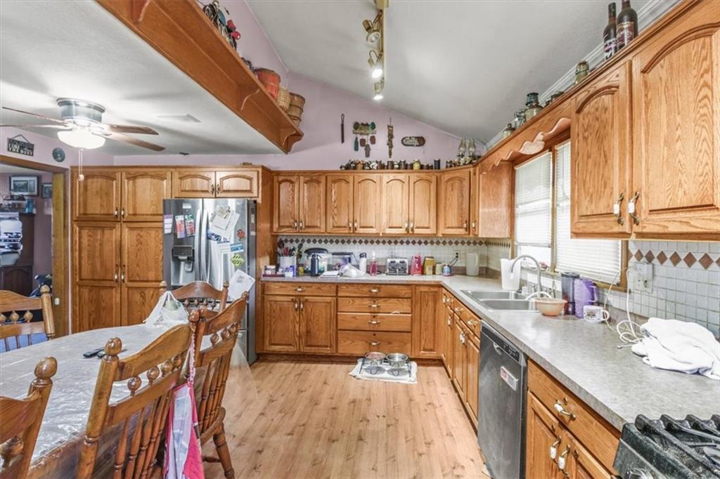 Enjoy the best of country living on 8.75 acres just minutes from the city! Located off F Highway in unincorporated Jackson County, this property offers privacy, flexibility, and tons of potential. The home features a spacious eat-in kitchen with abundant cabinetry and all appliances staying, plus room for formal dining. The bright living room opens to a nice sunroom, perfect for natural light and plants and includes a walk in soaker tub. The main level includes two large bedrooms and a generously sized bathroom. Upstairs offers space to create two additional rooms. Outside, you’ll find a detached garage already set up with separate living quarters, including a kitchen area and full bath... ideal for guests or rental potential. The commercial-grade walk-in freezer stays! Enjoy the large upper deck, charming old barn, additional outbuilding, home generator, and even a horseshoe area for entertaining. Just needs your vision!