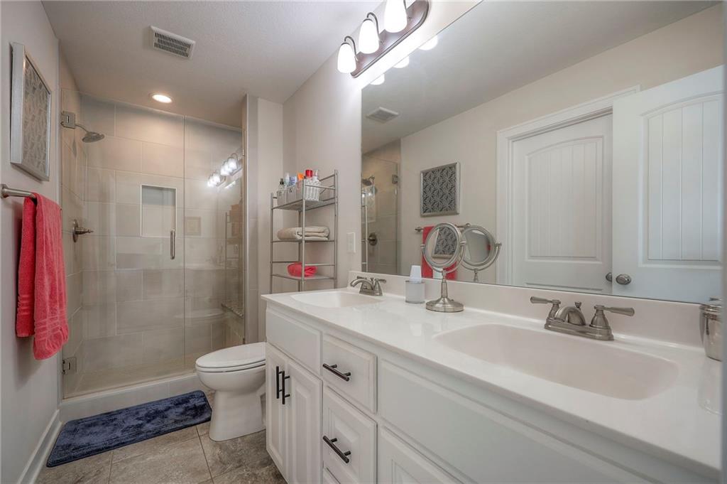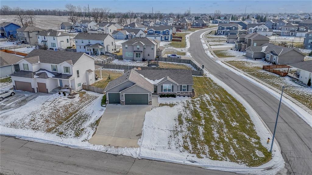 HUGE PRICE REDUCTION with tremendous value - come check it out! Welcome to this like-new ranch/reverse 1.5 home. The open-concept living room, kitchen, and breakfast area create an inviting first impression with vaulted cathedral ceilings, luxury vinyl plank flooring, and expansive windows that fill the space with tons of natural light. The kitchen blends style and function, offering ample room for cooking, gathering, and entertaining, with upgraded granite countertops, a beautiful tile backsplash, painted cabinetry, and stainless steel appliances. Just off the kitchen, the breakfast room features sliding glass doors that lead to the covered patio, while the living room features a stunning stone-front gas fireplace. The primary bedroom is light-filled and refined with vaulted ceilings and box bay windows overlooking the backyard. The en suite bathroom offers a double bowl sink, a beautifully tiled custom walk-in shower with a built-in niche & a granite-topped bench, and a walk-in closet. The main level also includes two additional bedrooms with generous closet space, a second full bathroom, and conveniently located laundry. The builder-finished basement expands the living space with a fourth bedroom that has a large egress window, a third full bathroom, and plenty of room to entertain in the large family room and recreation area. Situated on a generous corner lot, the home offers a sizable patio with both covered and uncovered areas, perfect for future BBQ's and fun! Upgrades/Updates: irrigation system, buried downspouts, landscaping, a vertical garage door opener, and an expansion to the patio.