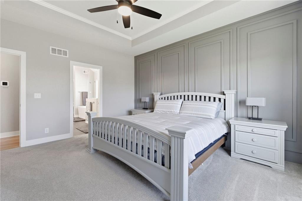 Greenbelt Walkout / Natural Light / 2 Primary Suites & 2 Pantry Areas! Boulder Hills delivers a rare find: fully finished true walkout lower level built for multi-generational living, backing to a gallery forest greenbelt, with Timber Sage Elementary steps away. Two primary suites — one on each level. Upstairs: wall of windows, quartz kitchen island, two pantries, and a screened deck. Downstairs: two bedrooms, full bath, 7-ft wet bar, and a private walkout entrance; ideal for parents, adult kids, or long-term guests. The fully fenced yard with three gates opens to a level backyard made for gatherings and games, all framed by a gorgeous gallery forest greenbelt. A built-in storm shelter adds serious peace of mind, and a storage area has 5th bedroom possibilities. Seller upgrades: epoxy garage floors, garage sink, built-in shelving & workbench, extended deck with backyard steps, active radon mitigation, and metal fencing with three gates. Boulder Hills amenities: clubhouse, pickleball, putting green, pool, playground, and trails. Gorgeously maintained. Truly move-in ready. These don't come up twice. Information deemed reliable but not guaranteed. Buyer to verify all information.