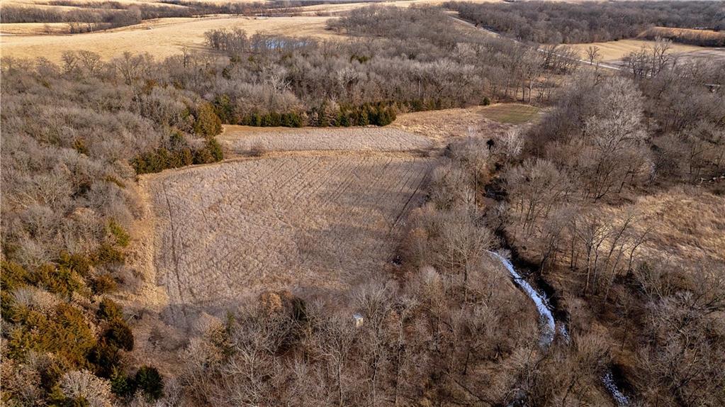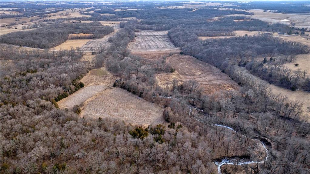 The Jameson area is experiencing strong demand for both rural home sites and quality hunting land, and this farm is well suited for either—or both. Whether you’re looking to build, hunt, or simply enjoy the outdoors, this property checks all the right boxes. The farm is exceptionally well laid out for hunting, offering a diverse mix of habitats and benefiting from its position among several large blocks of neighboring cover. The wooded portions of the property feature mixed hardwoods with varying slopes, creating ideal deer bedding opportunities for nearly any wind direction. In the heart of the farm, several open fields are complemented by Mason Creek as it winds through the property, providing a reliable water source and stealth access for hunters. These open fields have been managed for wildlife habitat and include warm-season grasses along with both annual and perennial food plots. Despite its size, this tract truly packs a big punch—offering food, water, bedding cover, and natural travel funnels. The layout creates a hub that ties into surrounding habitat, making it a standout property for whitetail hunting. While the seller doesn't normally run trail cameras, he had a friend place some for a few weeks in September of 2025. In that short period of time there were several up-and-comers and a couple of very nice bucks-the tip of the iceberg for what this farm can produce. With the strong deer population in the area and the impressive setup of this farm, this property is a true gem for hunters. Beyond its recreational appeal, the area continues to grow, making this property an excellent option for a future home or country cabin. The rolling hills along the west side of the farm offer potential building sites with scenic views overlooking the creek bottom below. Located approximately a quarter mile west of K Highway, the property provides the peaceful seclusion of a quiet country gravel road while still offering the convenience of quick access to the blacktop.
