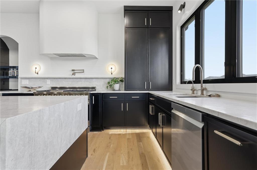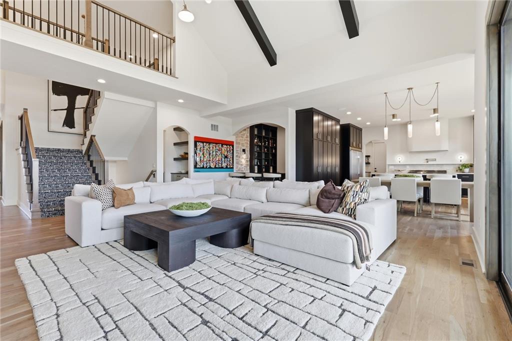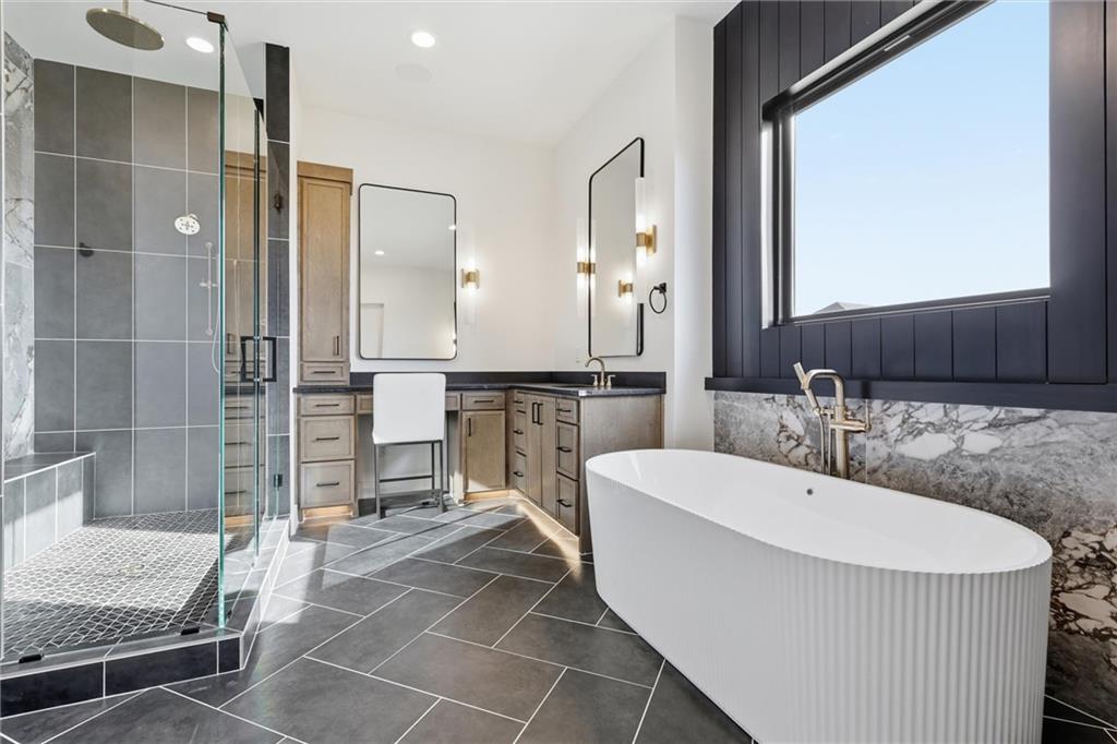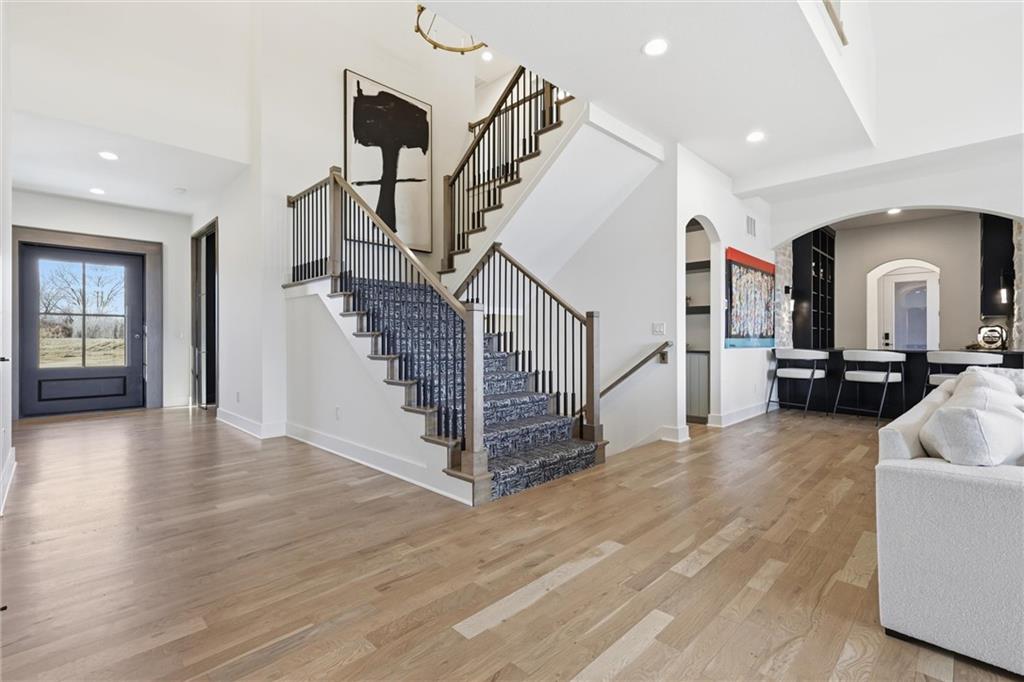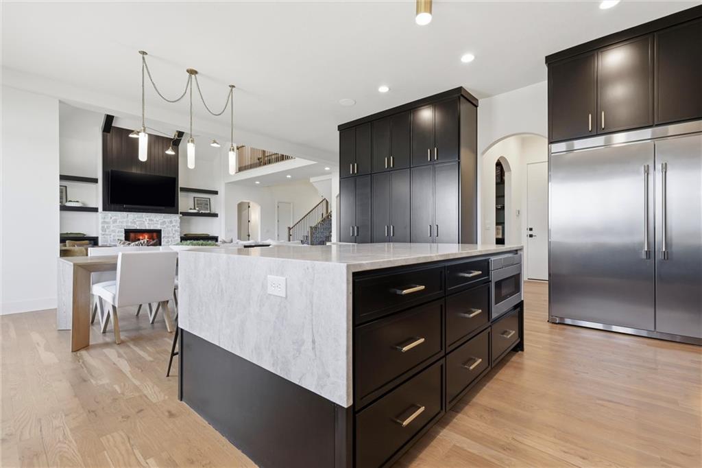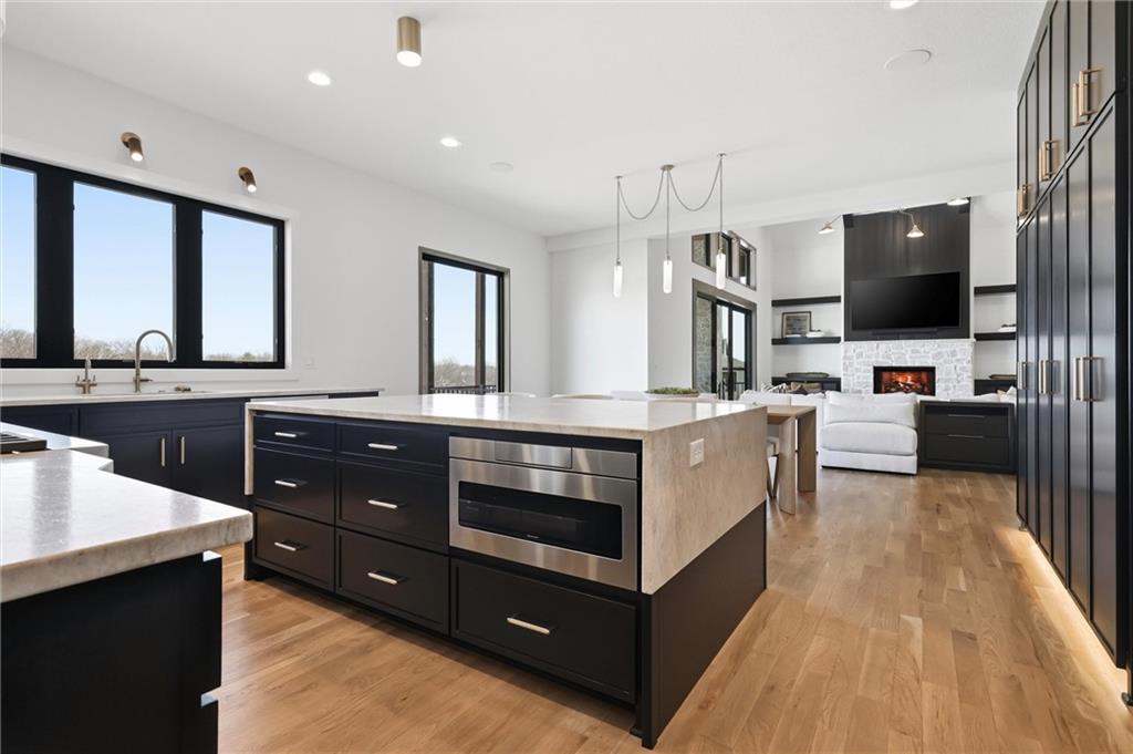 AMAZING NEW 1 ½ story Estate home in highly desired Estates at Chapel Ridge on 1.14 acres! Park Hill School District ! Everything you would want for luxury and style with attention to detail! This 5 bedroom / 5 1/2 bath contemporary home has a 4 car garage with additional #5 in the lower level! Incredible entry features 8' metal pivot front door ! Wood floors thru out the main level. 2nd bedroom suite currently an office which transcends you toward the towering great room with beamed ceilings and fireplace which is a work of art with stylish shelving to showcase your artwork and keepsakes! Upgraded sliding door to the covered deck and fireplace w/ an entertainment area to watch your favorite sports team! Custom designed stairs to the large flat backyard and patio. Gourmet kitchen has quartz countertops and waterfall edge on the oversized island. Cabinet space galore! Side by side refrigerator / freezer, 6 burner range & double oven, in-drawer microwave, farm sink w/ instant hot water. The back pantry has double refrigerator drawers with plentiful shelving, sink and coffee bar space. Enjoy the main level wet bar with ice maker, double wine / beverage refrigerators and perfect entertaining space. Primary Suite is a place to relax in front of the linear fireplace and spa like bath with heated tile floors, double vanity, soaking tub and spacious walk-in shower. You will love the incredibly designed primary closet with its own laundry, special lighting and pull down racks. 2nd floor has 3 ensuites + 2nd office & 2nd laundry. Walk out unfinished Lower level has so much potential to design your own golf simulator space, 6th bedroom suite ...whatever you need ! Excavated area under the NE 2 car garage with an addition garage door to allow access for golf cart storage! The entire 1.14 acres have sprinkler system and sodded. Over the top landscaping ! 3 HVAC systems ...there are so many incredible extras in this home ... have to see it to capture the beauty and decor !