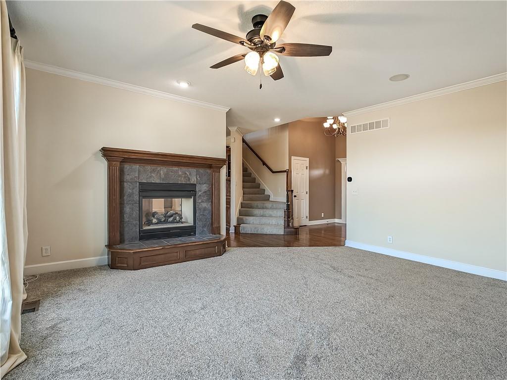 The Reserve at Prairie Highlands. 4BR/5BA golf course home in a highly desirable Olathe location. This spacious residence features an open, light-filled layout ideal for everyday living and entertaining, plus a finished basement with a bonus room perfect for a home office, gym, or guest space. Recent updates include new Karastan carpet, fresh interior paint, and refinished hardwood floors throughout. Generously sized bedrooms provide comfort and privacy, while five bathrooms add exceptional convenience. Enjoy peaceful golf course views and a fenced backyard, ideal for relaxing, pets, or outdoor gatherings. Close to schools, dining, and highway access. A rare opportunity to own a home on the course—schedule your showing today. For more information about the community visit the HOA website at : https://www.prairiehighlands.org/info.php?pnum=6