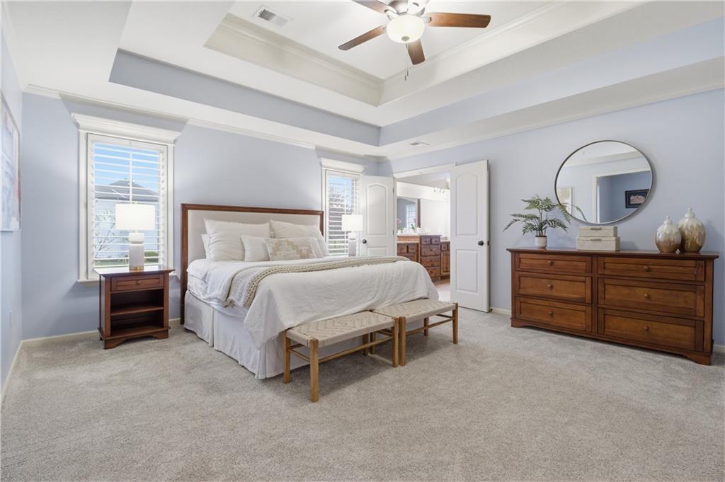 Tucked away on a quiet cul-de-sac, this beautifully maintained one-owner two-story home offers space, comfort, and thoughtful updates throughout. Located in the highly sought-after Blue Valley School District, the home provides a calm, welcoming setting that feels both inviting and ideal for everyday living. The main level features multiple gathering spaces highlighted by two fireplaces that create warm and cozy living areas perfect for relaxing or entertaining. A dedicated main-floor office provides an ideal space for working from home, studying, or managing daily tasks. Over the past six years, the home has seen several important updates including interior and exterior paint, carpet, tankless water heaters, and a new main HVAC system installed in September 2025. Upstairs, the oversized primary suite offers a comfortable retreat with a spacious sitting area—perfect for a private lounge, reading nook, or flexible living space. The convenience of second-floor laundry adds to the home’s thoughtful and functional layout. The finished basement expands the home’s living space and is well suited for entertaining, featuring a wet bar, a fifth bedroom, and a full bathroom—ideal for guests or additional living quarters. Blending comfort, practicality, and recent updates in a desirable location, this home offers a welcoming place to settle in and enjoy.