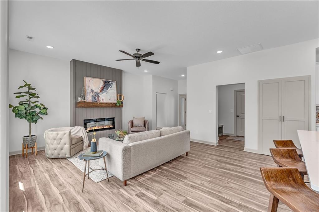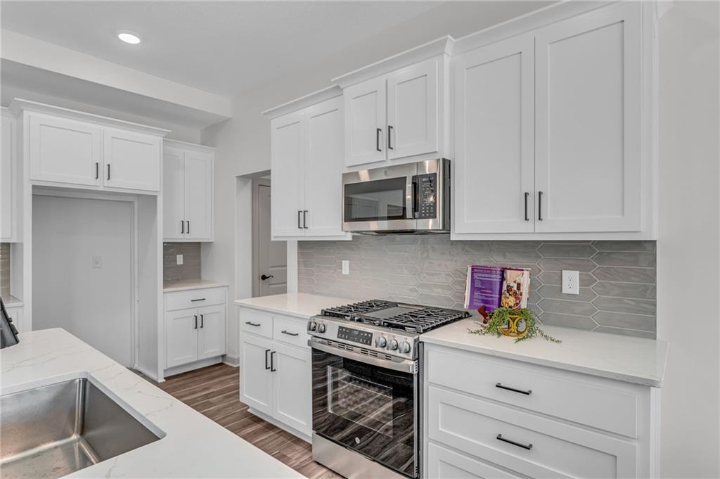 Address is NOT mapped, see directions!!! The Bridgeport floorplan built by Drippé Homes. Open concept daylight basement with tons of natural light! Kitchen furnished with stainless appliances, gas range, microwave, quartz countertops, large island with oversized sink and spacious walk in pantry. Primary opposite other bedrooms. Ensuite features double vanity, tiled walk-in shower, private water closet, MASSIVE closet with window bench and pass through to laundry. Mudroom off garage with boot bench. Cozy up to the fireplace in the living room or enjoy the sunrise from the covered back patio. Home backs to tree-line providing ultimate privacy. Three car garage provides plenty of storage. Directions: From US-56 E and E High Street, Left/North on E High Street, E High Street turns into Rockers Drive, home is on the right on the N side of US-56 E