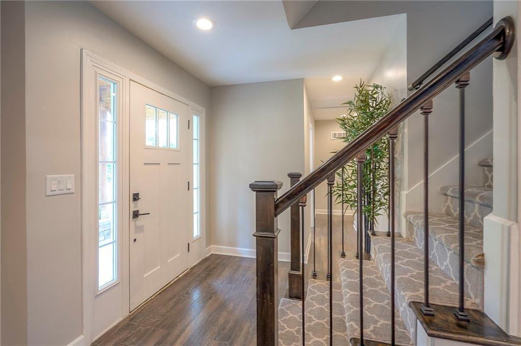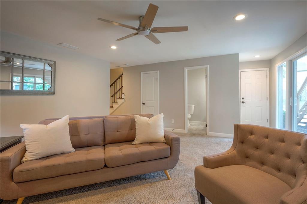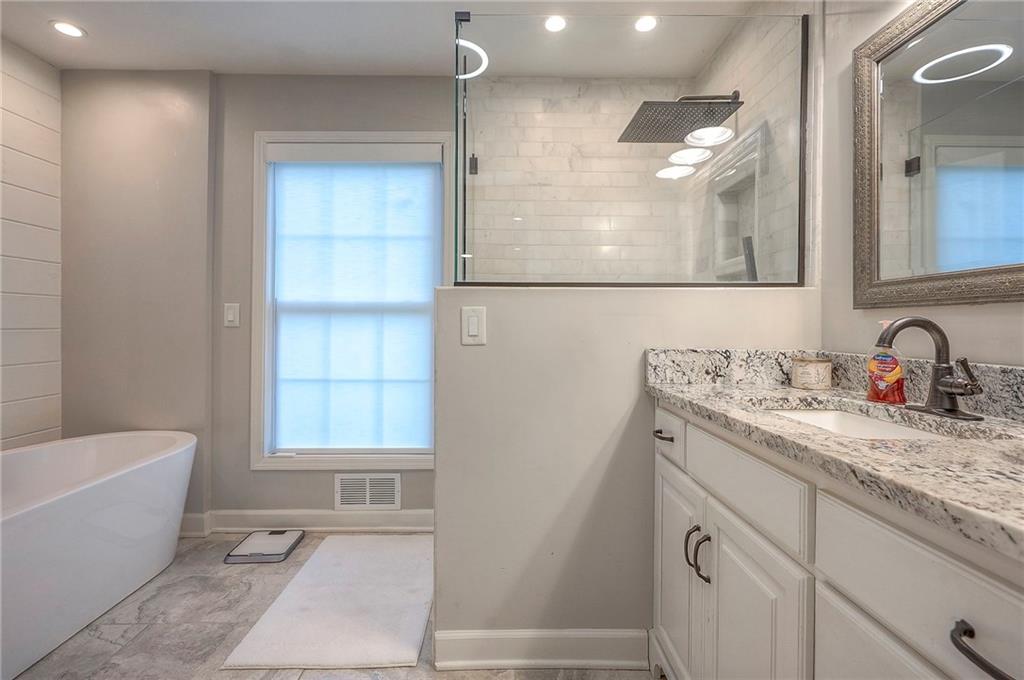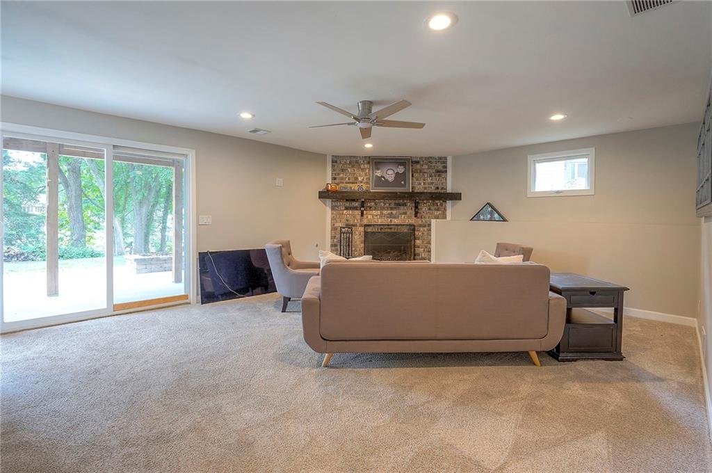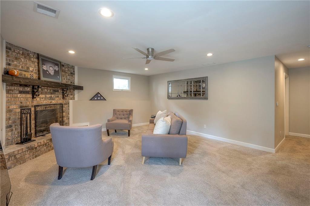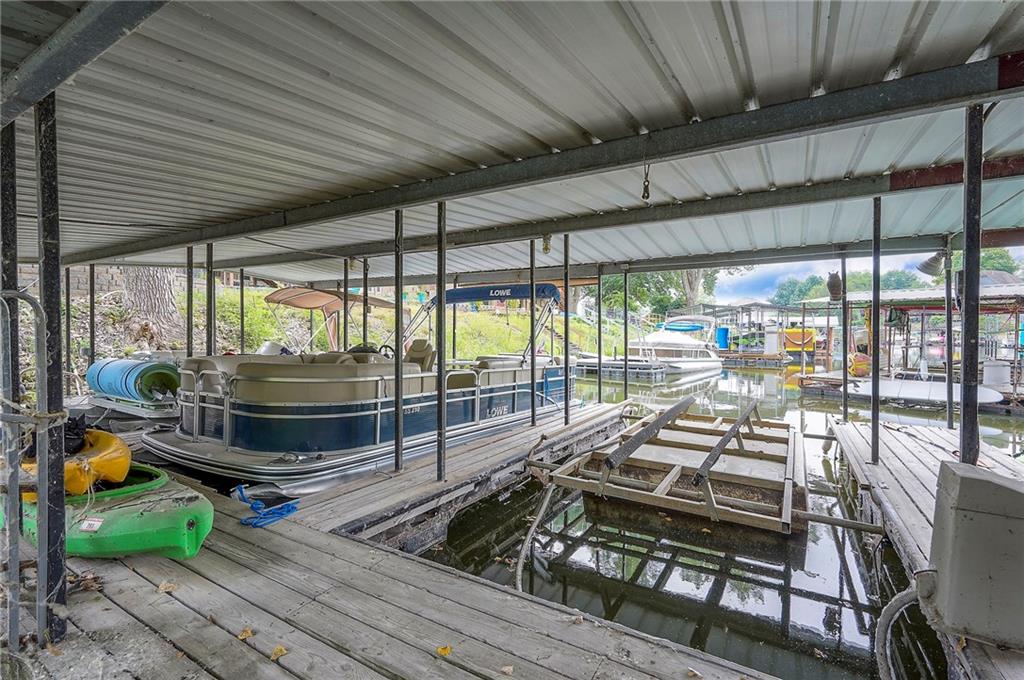 Tucked on nearly half an acre and just steps from the charming city park and tennis/pickleball courts, this beautifully remodeled lake front home blends timeless character with modern luxury. Inside, dark distressed engineered hardwoods flow seamlessly across the main level, guiding you through the open dining and living area to a cozy gas fireplace. Sliding glass doors open to a new Trex deck where you can soak in peaceful water views. The chef’s kitchen features custom cabinetry and premium granite countertops, thoughtfully matched throughout the home for a cohesive feel. A walk-in pantry provides space for all kitchen appliances, while the functional island offers convenient in-kitchen dining. The main-level primary suite offers tranquil water views, his-and-hers closets, and a new spa-like bath with a soaking tub and custom marble shower. Upstairs, two additional bedrooms—each with water views—share a well-appointed bathroom with a tub/shower combo. The finished walk-out lower level is perfect for relaxing or entertaining, with plush carpeting, a warm fireplace, and a wall-mounted TV ready for movie nights. Ample storage keeps everything organized, while the extra-wide garage offers room for vehicles, hobbies, and all your outdoor gear. Beyond the beautiful finishes, this home also offers peace of mind with significant improvements already completed, including foundation piers, a new HVAC system, new attic insulation, an extra-wide driveway, upgraded appliances that stay with the home, and a remodeled garage—making this property as solid as it is stunning.