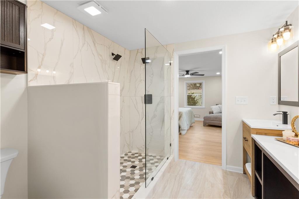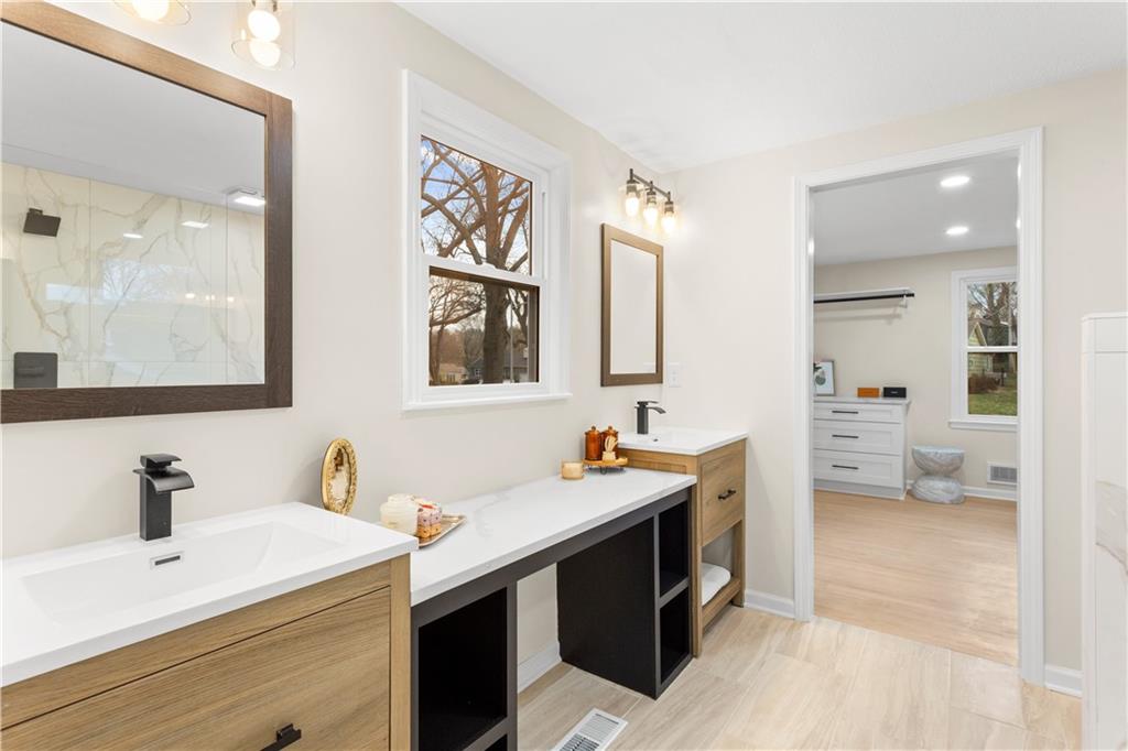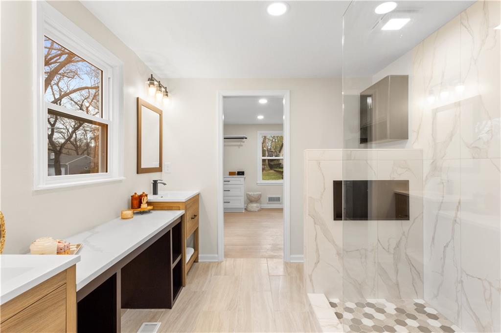 Welcome to this beautifully reimagined home in the heart of Prairie Village, where modern updates meet timeless charm. This fully renovated property has been thoughtfully transformed into a spacious 3 bedroom, 3 ensuite bathroom home with high-quality improvements throughout. Inside, you’ll find brand new refinished floors that flow seamlessly through the main living areas, complemented by all new electrical and plumbing systems for true peace of mind. The home also features brand new windows that have been custom tinted to provide an added layer of privacy while helping reduce utility costs during hot summer months. New gutters and downspouts, plus a roof that’s less than three years old, offer long-term durability and efficiency. All new panel doors. A new garage door with a brand new motor system adds both convenience and curb appeal. The newly created primary suite is a true retreat, featuring a large walk-in shower with dual shower heads, a custom makeup vanity station, and a huge walk-in closet complete with stackable washer and dryer, custom cabinetry, and an additional washer/dryer hookup in the basement for added flexibility. Every bathroom and bedroom has been completely updated with modern finishes and fixtures, and the home has been freshly painted inside and out, giving it a clean, move-in ready feel. At the heart of the home is a brand new kitchen designed for both everyday living and entertaining. You’ll love the custom soft-close cabinetry, thoughtful storage details, and all LG black stainless steel appliances. Just off the kitchen, a screened-in porch creates the perfect space to relax, dine, or entertain while enjoying the outdoors. Outside, fresh landscaping enhances curb appeal and provides a polished, welcoming first impression. This is a rare opportunity to own a truly move-in ready, fully updated home in one of Prairie Village’s most desirable locations. Welcome home!