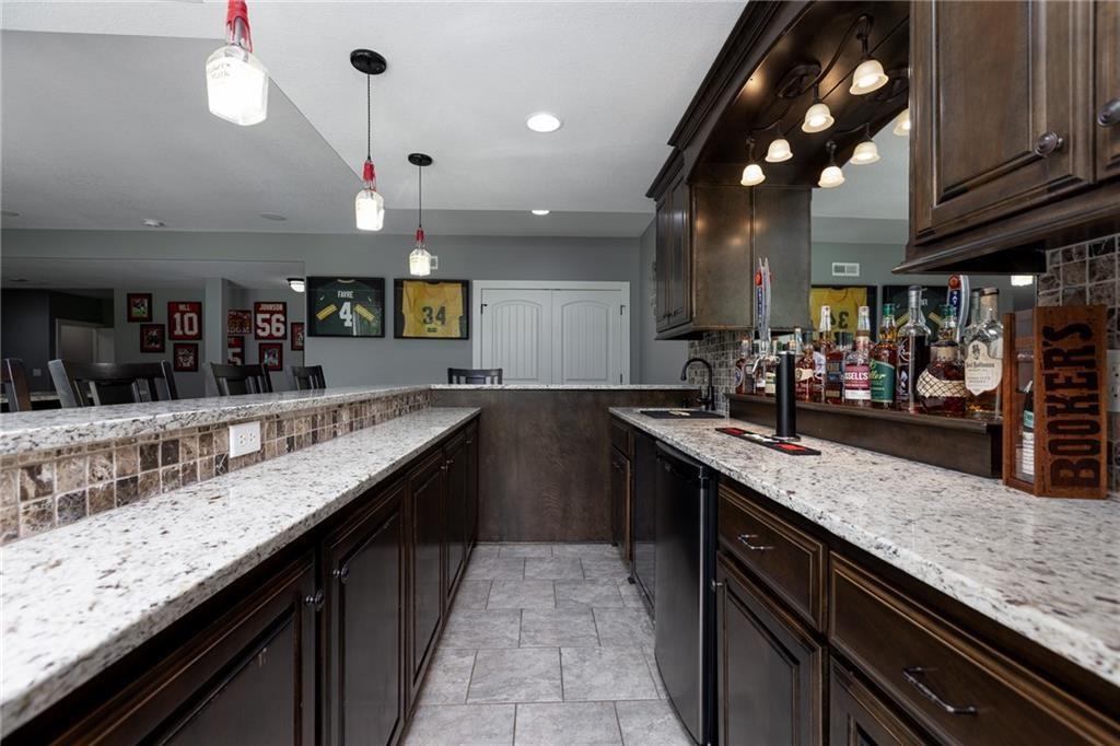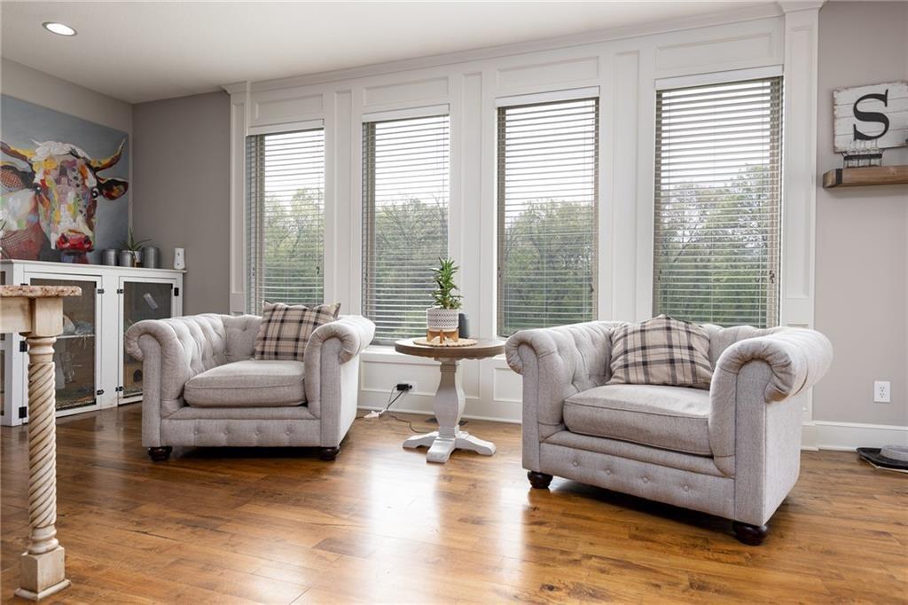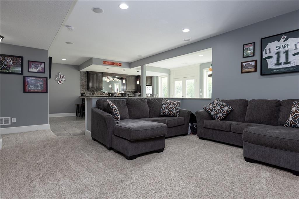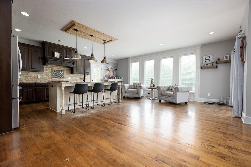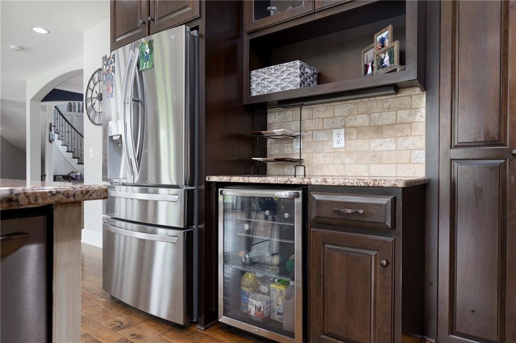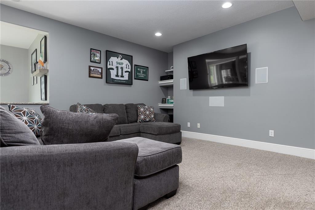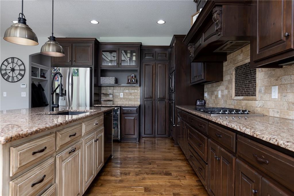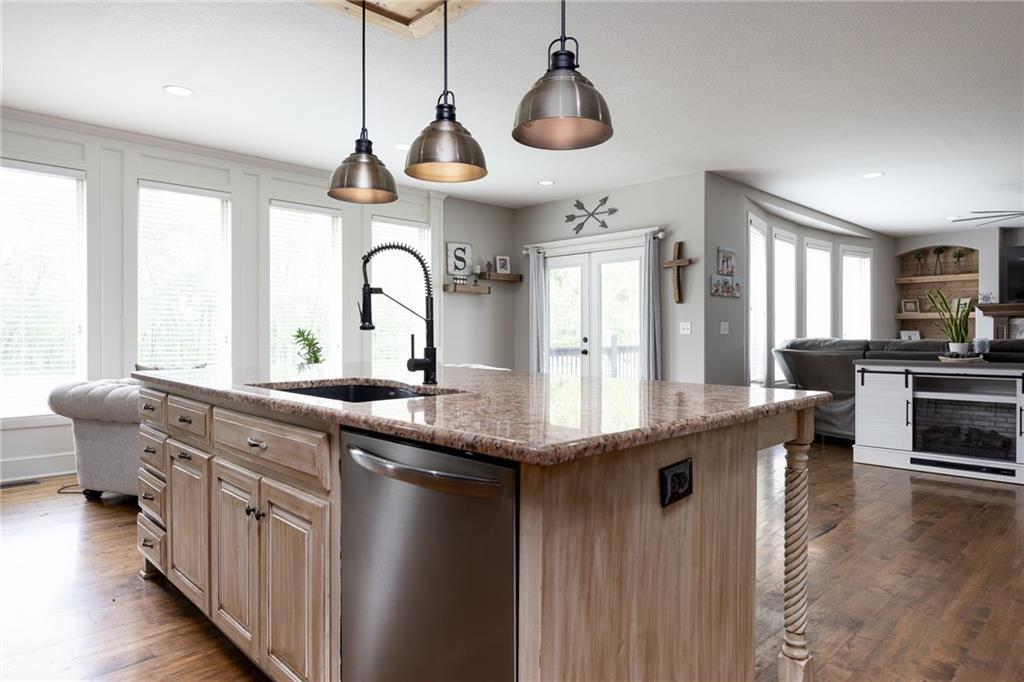 Significant Price Drop! SELLER IS OFFERING $15,000 in seller paid closing costs!!! Welcome to 13017 Kelli Dr in the Oakbrook subdivision of Kearney. This 5-bedroom, 3.5-bath home sits on 1.25 acres in a cul-de-sac and backs to HOA green space, offering both privacy and room to spread out. The main level features an open layout with hardwood floors, a gas fireplace, and a spacious kitchen with a large island, custom cabinetry, new backsplash and a walk-in pantry with convenient garage access. Upstairs, the primary suite includes a walk-in closet, jetted tub, and separate shower. Additional bedrooms are generously sized. The finished walk-out basement adds flexible living space with a wet bar, full bath, and extra bedroom—ideal for guests or entertaining. Enjoy outdoor living with two decks, including a covered area with ceiling fans, plus a large yard and fire pit. Located in the Kearney School District with easy access to local amenities and highways. Agent/Owner