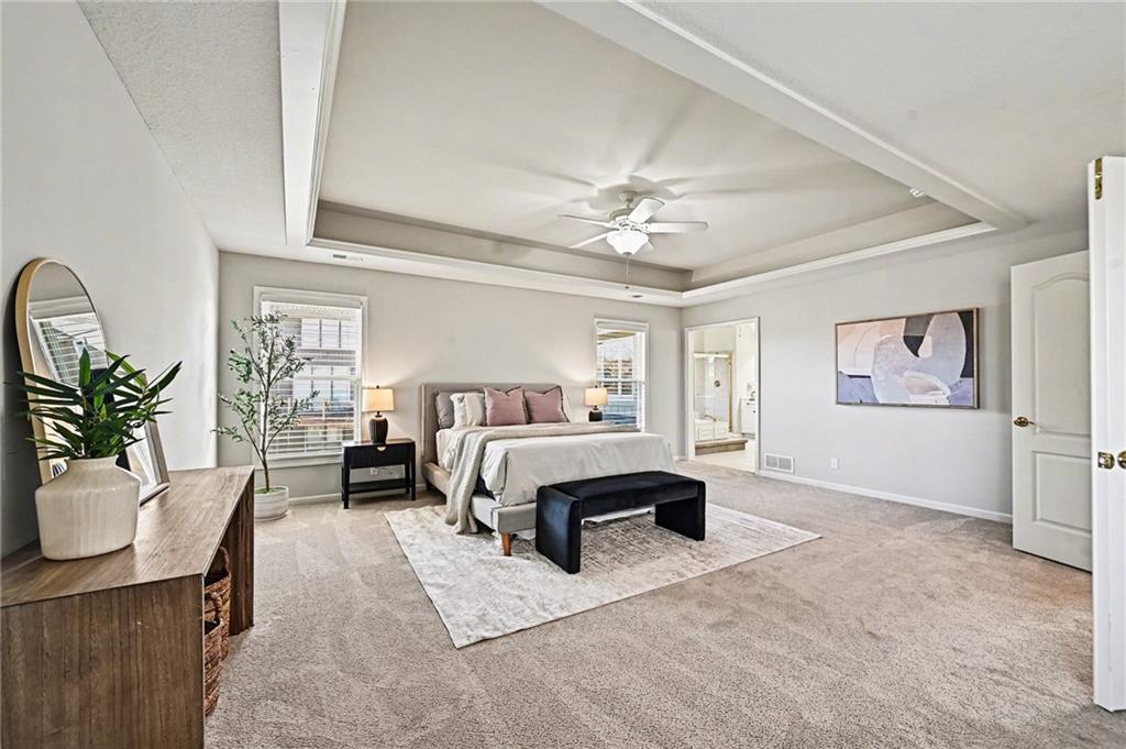 Tucked within a cul-de-sac in The Fairways and neighboring Hodge Park Golf Course, this custom-built residence offers a level of structural investment — including three fireplaces, one within the primary suite — that today's construction costs make difficult to replicate at this price point. Constructed with 2x6 exterior framing, the home reflects a higher standard of structural integrity, supporting improved insulation, long-term efficiency, and durability beyond what production builds in this range typically offer. During the original construction, the garage footprint was expanded by five feet — a decision that simultaneously created an enlarged primary closet designed for organized, functional living. These are structural choices made at the time of the build that cannot be easily replicated after the fact. The walkout lower level spans approximately 1,800 square feet with nine-foot foundation walls, creating volume typically reserved for above-grade living. Already stubbed for both a bathroom and kitchen, the space is well-positioned for multigenerational living, a dedicated entertaining or media room, a home fitness suite, or a substantial future finish tailored to your needs. Positioned within the Staley High School attendance area and minutes from Shoal Creek shops and restaurants, downtown Liberty, and Zona Rosa, the home also offers convenient access to major highways and MCI airport. To support buyer confidence, the seller has completed a professional pre-listing inspection and addressed key items in advance — including new exterior paint, new carpet, and upgraded insulation to R-49 for improved year-round comfort and energy efficiency.