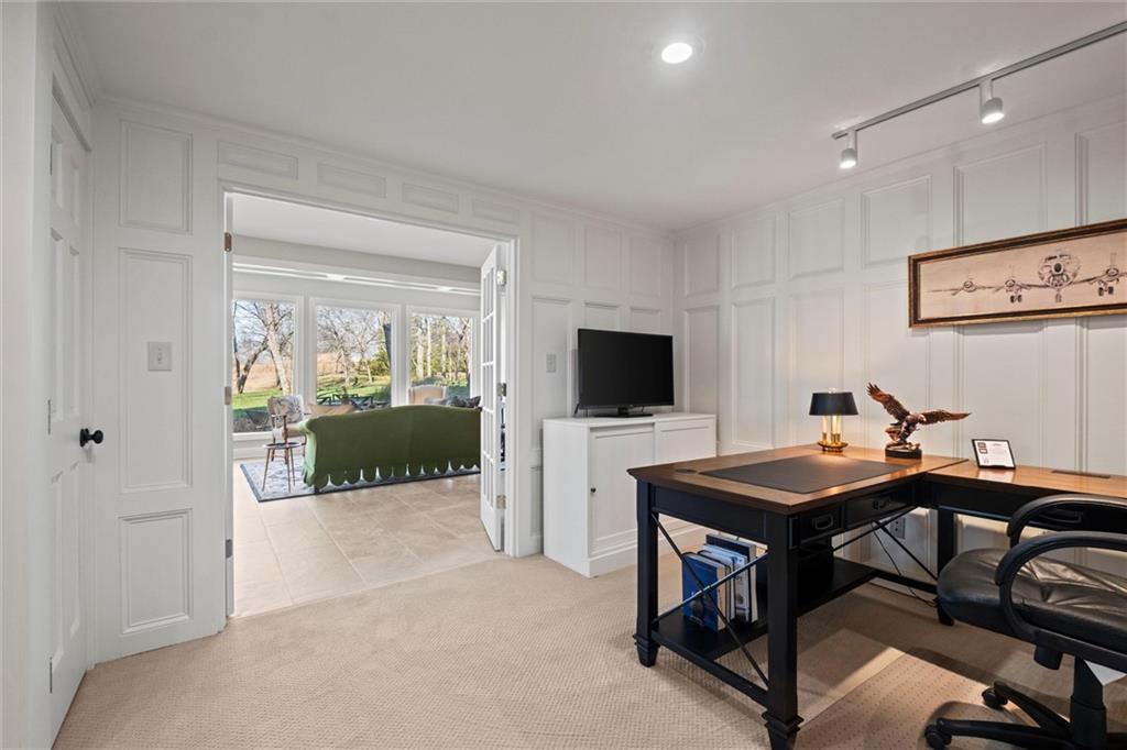 Welcome to this 10 acre estate in prime Overland Park location! Nestled at the end of a long private drive lined with vibrant October Glories, this timeless 4 bedroom, 4.5-bath home has been meticulously maintained and offers the perfect blend of luxury, charm, and privacy all just minutes from 69 highway. Set on 10 breathtaking acres backing up to 31 acres of wooded conservation land, this estate offers serene views, a pond, and endless possibilities for recreation or future development. The heart of the home is the open and bright main level featuring formal dining, formal living room, office, hearth room with see-through fireplace and a beautiful updated kitchen featuring top-of-the-line appliances, double ovens, induction cooktop, oversized island, and a spacious walk-in pantry. Upstairs, newly installed wood floors flow throughout the hallway and into the primary suite offering an expansive sitting area with fireplace, large primary bath and oversized walk in closet. Three additional bedrooms are upstairs, each with their own dedicated bathroom and walk in closet. The finished walk out lower level includes a second kitchen area, media room, home office, and additional living space. Outside, you'll find a beautifully maintained drive through barn that houses a fully updated kitchen complete with granite countertops, custom cabinetry, and a walk-in cooler room ideal for hobbies or catering needs. Store outdoor equipment, machinery, and cars in this expansive barn with separate shop and stairs leading to an upper level for additional storage space. Along with a list of updates, the exterior was freshly painted along with a new hot water heater installed last year. Just minutes from 69 Highway, and within the Blue Valley School District this rare home offers easy access to top-tier shopping, dining, and everyday conveniences. Whether you’re seeking a private family estate or land with development potential, this property offers it all! Open House 3/14, 1:00-3:00pm